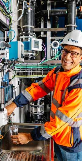 Anderzijds zetten we steeds sterker in op een verbreding van onze activiteiten. Daartoe bundelden we intern de krachten van onze diensten onderzoek, innovatie en digitale ontwikkelingen, en focussen we extern meer dan ooit op relevante samenwerkingen. Zoals in Aalst, waar Waterunie ons gezuiverde afvalwater opwaardeert tot drinkwater en het rechtstreeks op het net injecteert, uniek in Europa (p16-17).