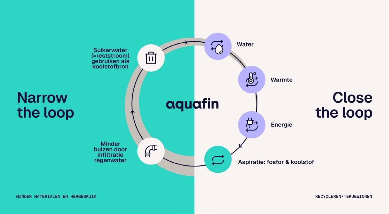 Ooit opgericht om de achterstand in rioolwaterzuivering in Vlaanderen weg te werken, heeft Aquafin gaandeweg zijn impact stevig uitgebreid. Niet alleen door verbreding met activiteiten gelinkt aan onze opdracht, maar ook door verdieping en intensieve samenwerkingen. Algemeen directeur Jan Goossens ziet de gegrepen kansen vertaald in een breed potentieel voor de komende jaren. afzetzekerheid en maakt grootschalige fosforrecuperatie mogelijk. De slibverwerkingscapaciteit in Vlaanderen staat sinds enkele jaren onder druk. En in een context van deglobalisering en geopolitieke spanningen is die keuze voor meer eigen grondstoffen geen luxe, maar noodzaak. Tegelijk kozen we er bewust voor om opbrengsten uit gemeentelijke activiteiten te herinvesteren in innovatie. Zo verkennen >>