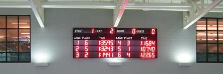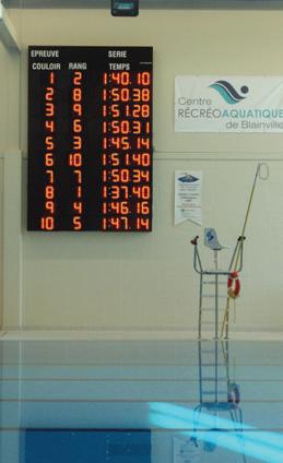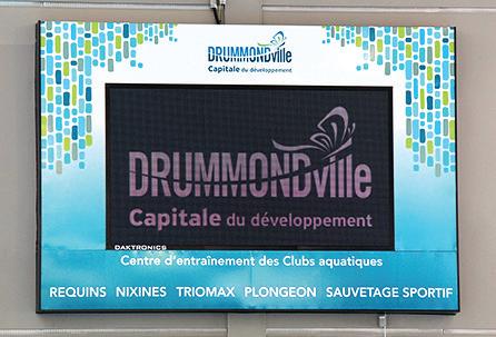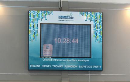 Réalisation : fourniture et installation d’un tableau-vidéo Daktronics permettant d’afficher les résultats des compétitions de natation, de plongeon et de water-polo en plus de pouvoir y afficher du contenu informatif et publicitaire.
