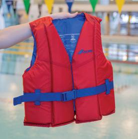 Le modèle pour enfant comporte deux couleurs pour identifier rapidement la taille. Elle est dotée d’un col de flottaison avec ganse de repêchage pour soutenir la tête, d’une ceinture et d’une courroie d’entrejambe avec boucle.
