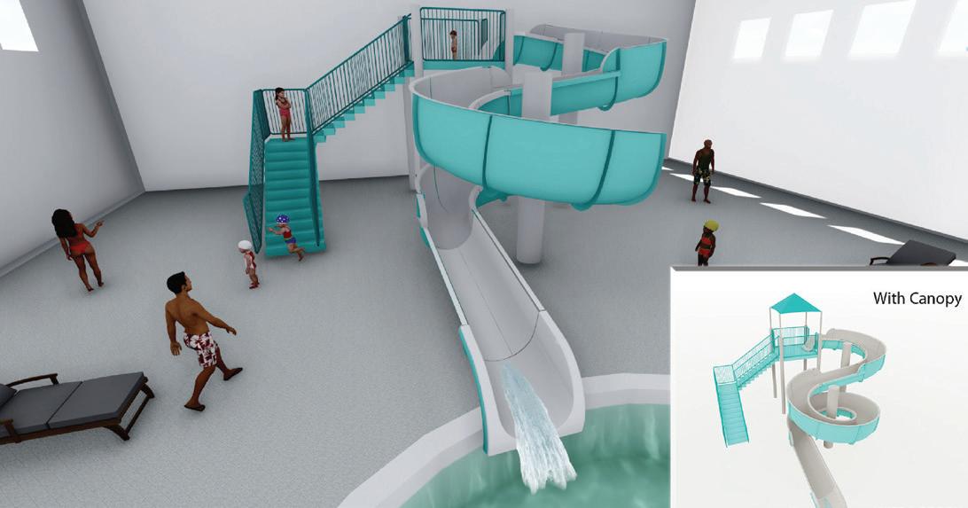 Réalisation : conception, fourniture et installation d’une glissoire double, dans le respect des normes de sécurité en vigueur. Un classique pour la jeune clientèle!