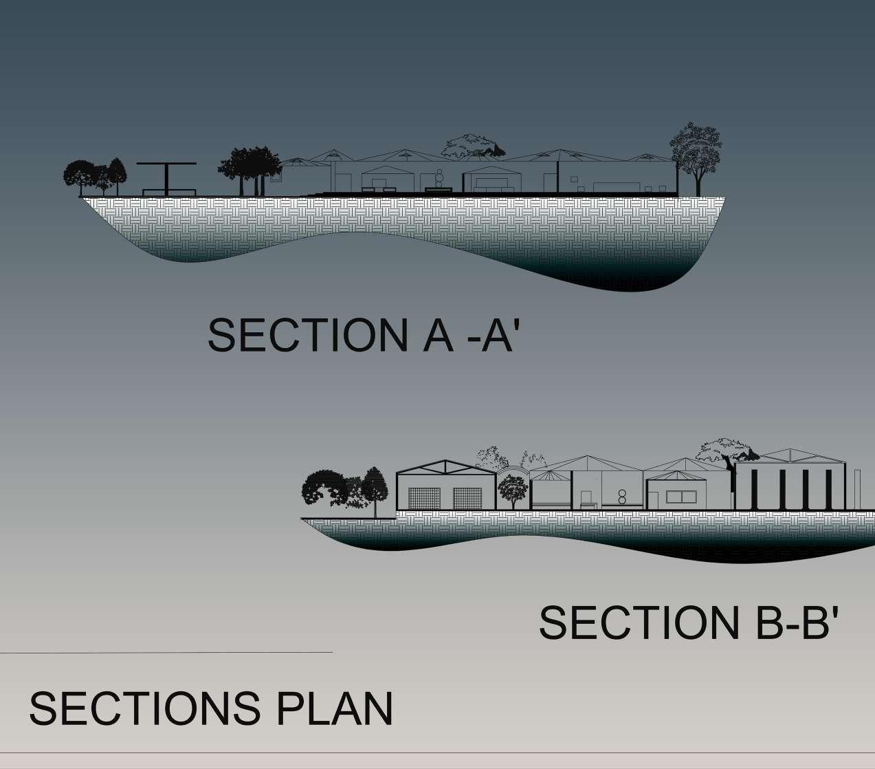 E n t r y a c c o r d i n g to t h e d i r e c t i o n o f t h e road.(considering both l a nes) entry from right side entry from left side Circul ation spaces a nd gathering spaces b e c o m e a h o t s p o t f o r t h e s p r e a d o f t r a n s m i s s i o n a n d h e n c e r e st r i c t i o n s should be applied onto these spaces. A COUPLE OF EXAMPLES OF SUCH SPACES IS, Boarding space, w here people narrow down at one space a nd waiting space is w here people spre ad out through narrow spaces. no. of l a nes incre ase a nd h e n c e o t h e r s p a c e s a r e compromised does not compromise other spaces no r the flow of the main road boarding ar e a circul ation w a i t i n g a r e a circul ation bus entrance pedestria n entry/exit bus exit parking vendo rs admin kitchen ca nteen waiting are a boarding are a board ing ar e a boarding area boarding area boarding are a 10 m wide road 10 m wide road admin drivers’ resting recre ational space a a’ B B’ connecting way to bus depot khed bus depot na naka khed road (10 m wide road) 8 m wide road 5 m wide road 5 m wide road pl a n @ 1:500 circulation 1.man ager ’s cabin. 2. control room. 3. parcel storage. 4. parcel collection. 5. tick et counter 6.reception desk. 7.information desk. 8.cash/storage room. 9.pantr y 10.play room. 1. 7. 6. 4. 2. 3. 9. 5. 8. 10. n board ing ar e a SECTION B-B’ SECTION A-A’ vendo rs admin ca nteen waiting 10 m road boarding boarding info rmation desk boarding boarding boarding boarding ca nteen 10 m road 10 m road ADMIN FIRST FLOOR PLAN @ 1:500 0 5 10 20 s s a 389 #5 A N D C 2020-21
