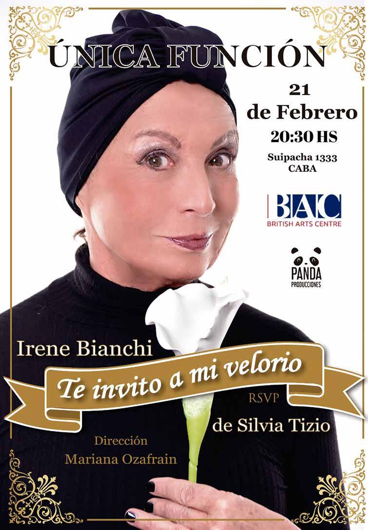 Irene Bianchi, el sábado 21 de febrero, presenta su unipersonal “Te invito a mi velorio”en CABA.