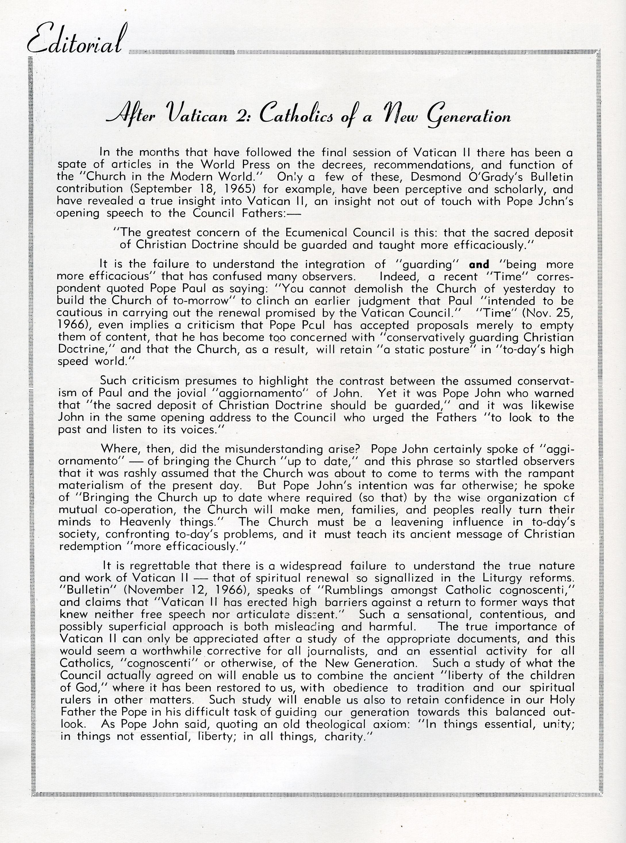 Friday, August 12, 1966, will linger in the memories of all present as a day of spectacle, devotion and achievement, and will be chronicled as the greatest day in the lang history of the College. For on that day the College had a new spiritual centre, a house of God that was indeed "an awe-inspiring place," a house of prayer and a place of sacrifice where engineering and architectural ingenuity vied with classic sculpture, and the artistry of the concrete and glass mozaics.