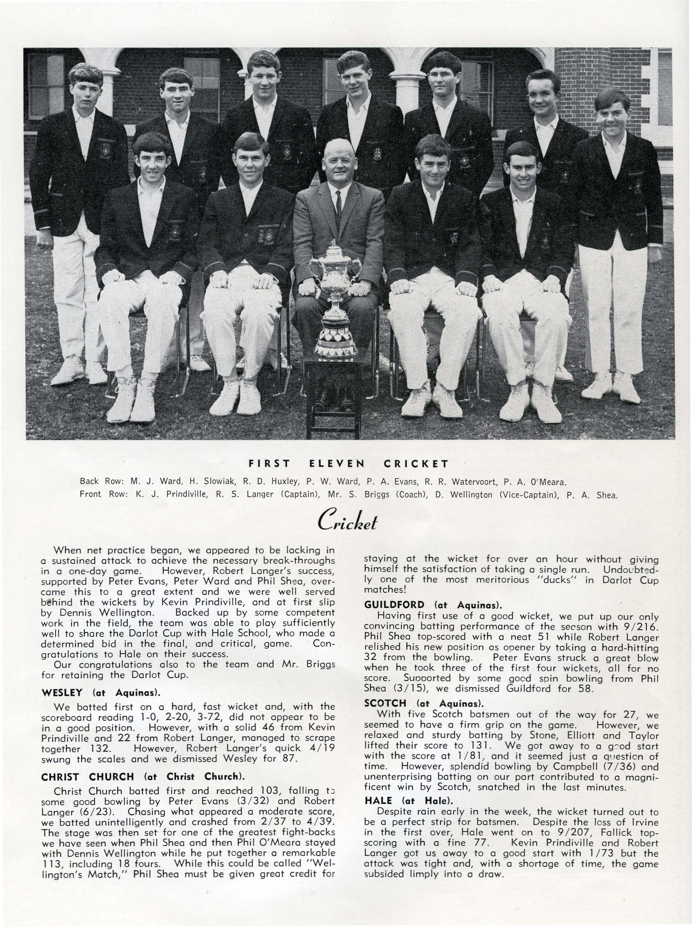 ST. PETER'S: Captain, R. Longer; Vice-Captain, D. Wellington.