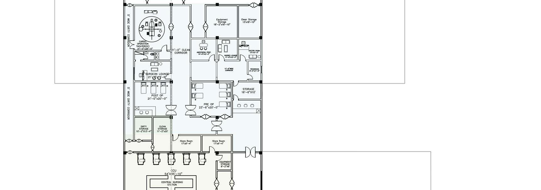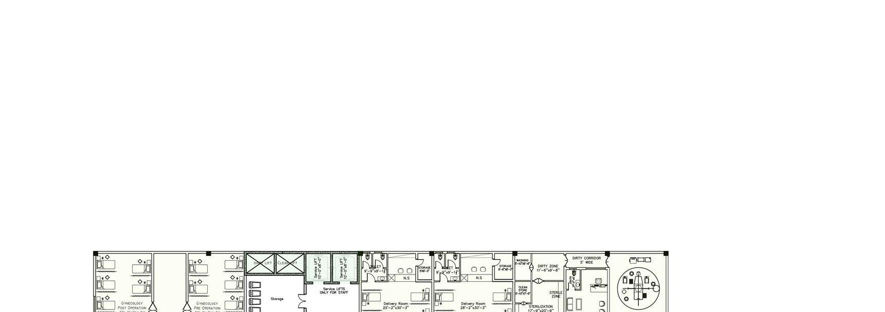 • Dirty/Clean Linen + Equipment Storage + Staff Changing Surgical Emergency
