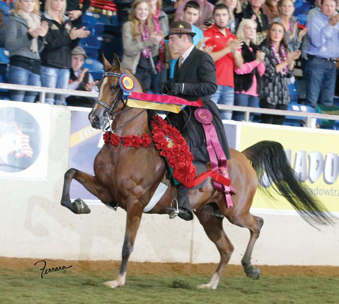 DAVINCI REFLECTION WA (SF Aftershoc x The Davinci Code) Ex: James Stachowski | O: Whispers Acres, Inc. B: Shawn Stachowski 2014 $50,000 HALCON FURNITURE HA SADDLE SEAT FUTURITY A THOUSAND STARS (Baske Afire x Kalarama’s Celeste) Ex: Jim Stachowski | O: Kimberly Jarvis B: Robin Crisman 2013 $50,000 HALCON FURNITURE HA SADDLE SEAT FUTURITY HEIRS NOBLE LOVE (Afires Heir x Noble Aphroditie) Ex: Joel Kiesner | O/B: T. Karlton Jackson 2013 $100,000 ARABIAN HORSE TIMES ARABIAN SADDLE SEAT FUTURITY SUPREME SENSATION SMP (Baskghazi x A Love Supreme) Ex: James Stachowski | O: Falan Alpert B: Rodney & Jacqueline Thompson 2015 $100,000 ARABIAN HORSE TIMES ARABIAN SADDLE SEAT FUTURITY NOBLE FFYRE (IXL Noble Express x Foxy Afire) Ex: Joel Kiesner | O/B: Maroon Fire Arabians, Inc. 2014 $100,000 ARABIAN HORSE TIMES ARABIAN SADDLE SEAT FUTURITY BAYONCE (Black Daniels x Laurel Hill Pennies From Heaven) Ex: Sharon Blendinger | O: Joseph & Alisa Mertens B: Bryan & Joanne Grossman 2015 $50,000 HALCON FURNITURE HA SADDLE SEAT FUTURITY MOVIN ON HEIR WA (Afires Heir x The Way She Moves) Ex: James Stachowski | O/B:Whispers Acres, Inc. 2016 $100,000 ARABIAN HORSE TIMES ARABIAN SADDLE SEAT FUTURITY EVG TRIDAN (Triften x CP Dansing Diva) Ex/O: Lori Foster | B: Evergreen Arabians LLC