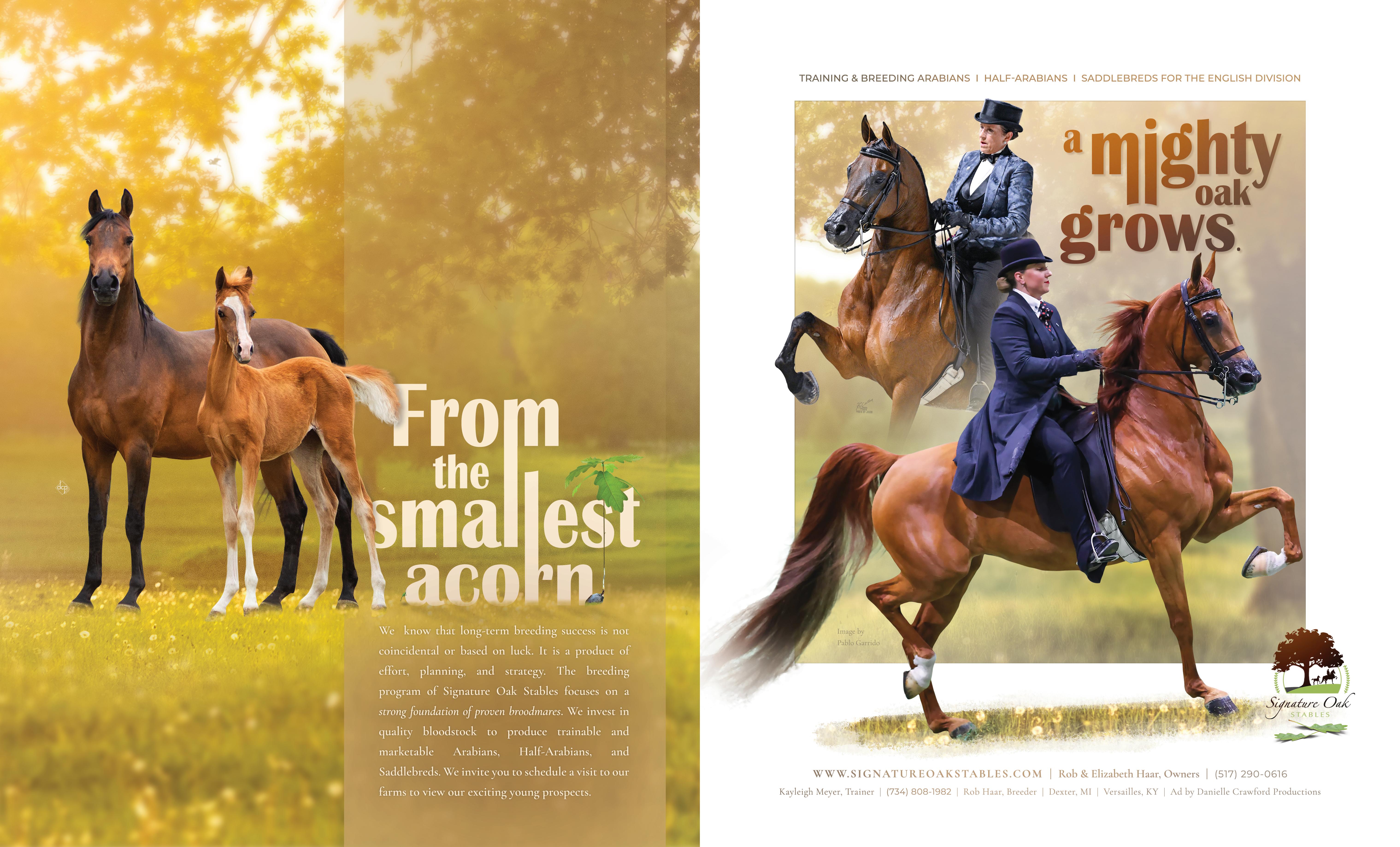 Tim also has high praise for Inception as a sire of Half-Arabians. “He’s the best we’ve ever had for that,” he says. “He keeps the Saddlebred look in topline, neck, movement and overall appearance, which is good, but leaves the Arabian type, especially through the head and attitude. We’ve been successful using several good stallions on our mares for Half-Arabians, but these Inceptions are a whole other level.”