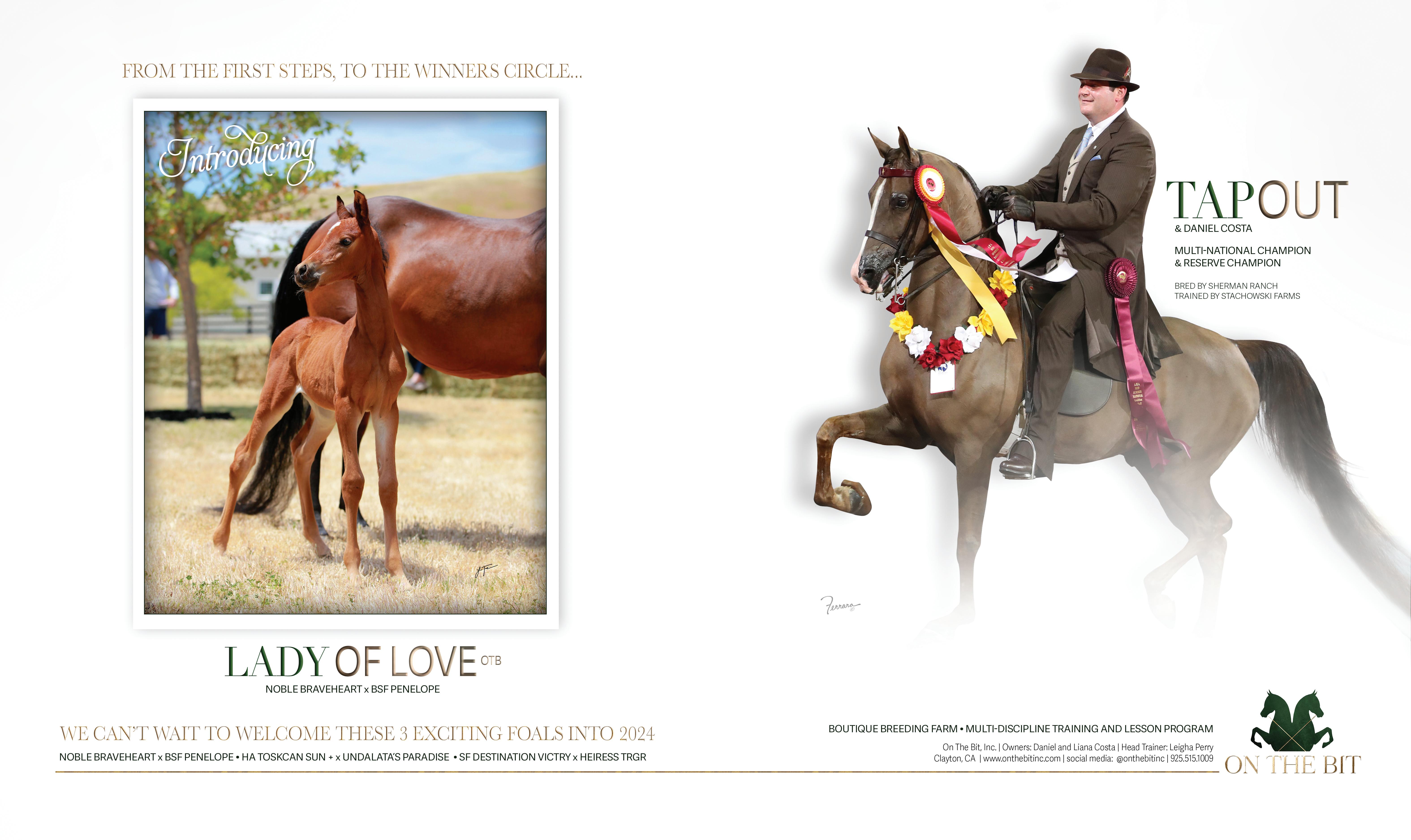 Undulata’s Paradise - a Saddlebred mare with an exceptional pedigree. We are excited for On The Bit, Inc.’s upcoming 2024 foal from these two.