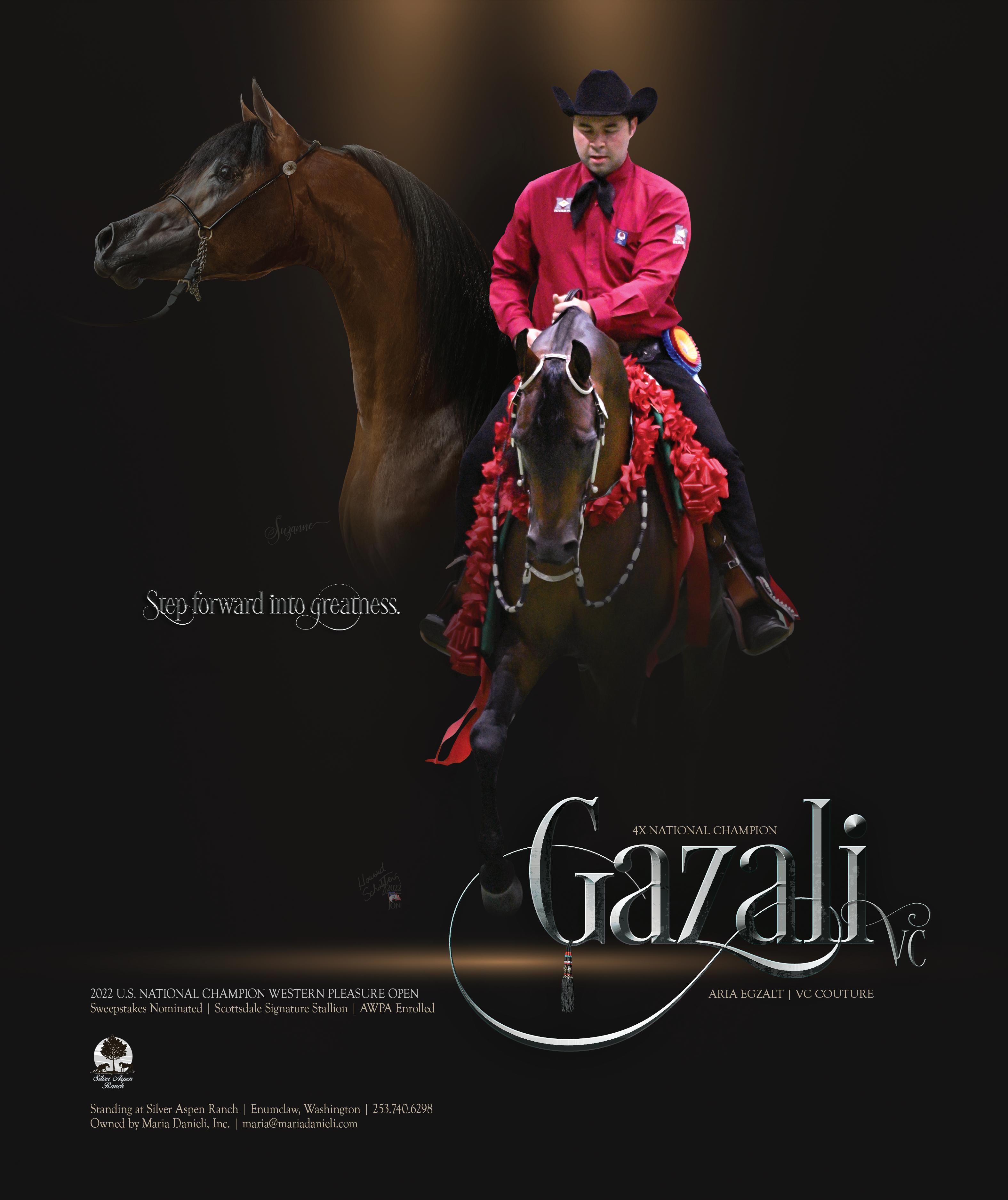 The stallion On Demand (by Onyx A), born in 2018, took home the 2022 U.S. National top ten title in the Arabian Western Pleasure Maturity after winning the championship at Mid Summer Nationals in the Arabian Western Pleasure Junior Horse class.