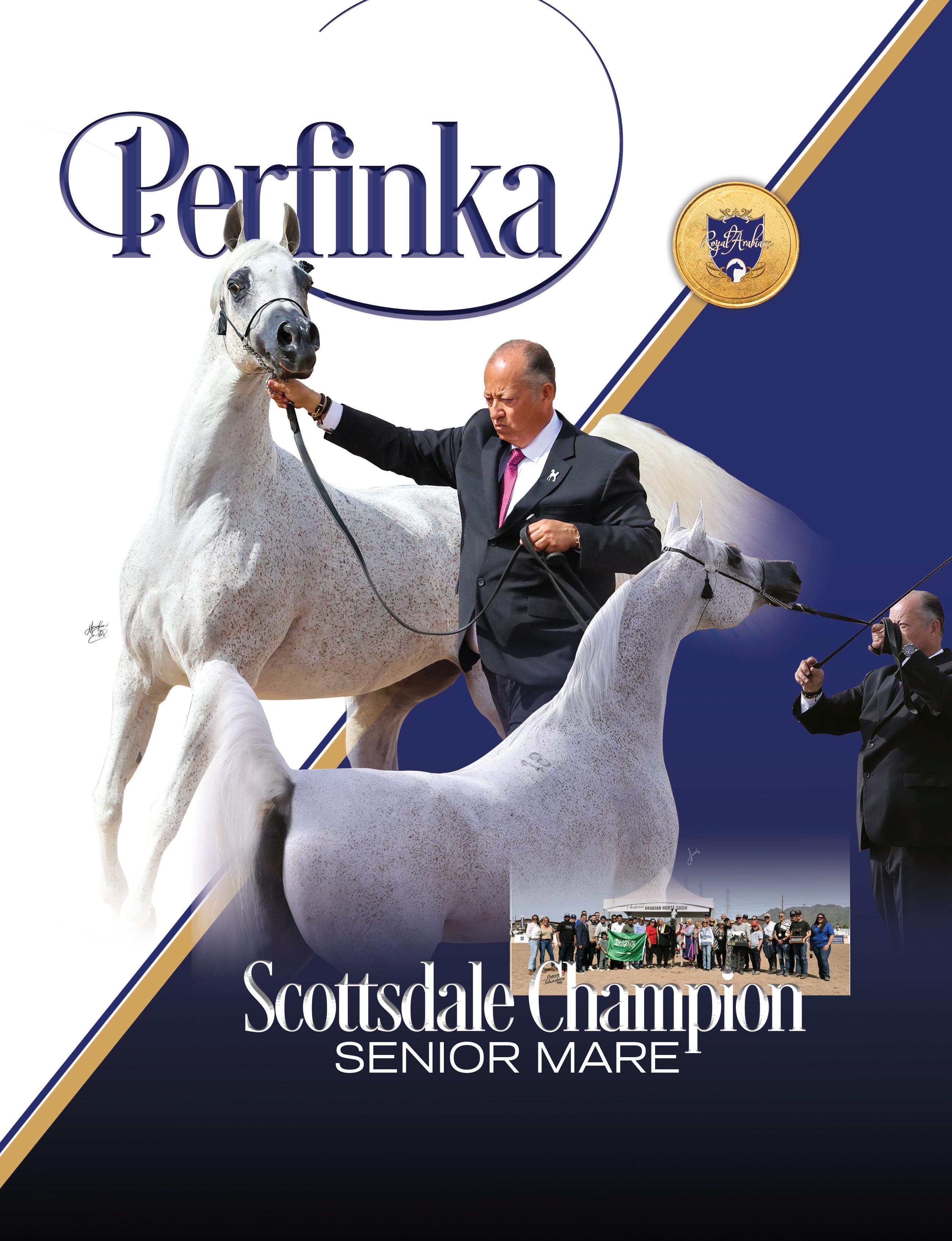 This global support for the breed, and the Royal program in particular, was especially apparent when Rodolfo led P erfinka (Esparto x Perfirka) to her First Place Arabian Mare 8 Years & Over win and ultimately, the Scottsdale Senior Mare Championship title. In what was her last appearance in the U.S., the stunning grey mare did not disappoint.