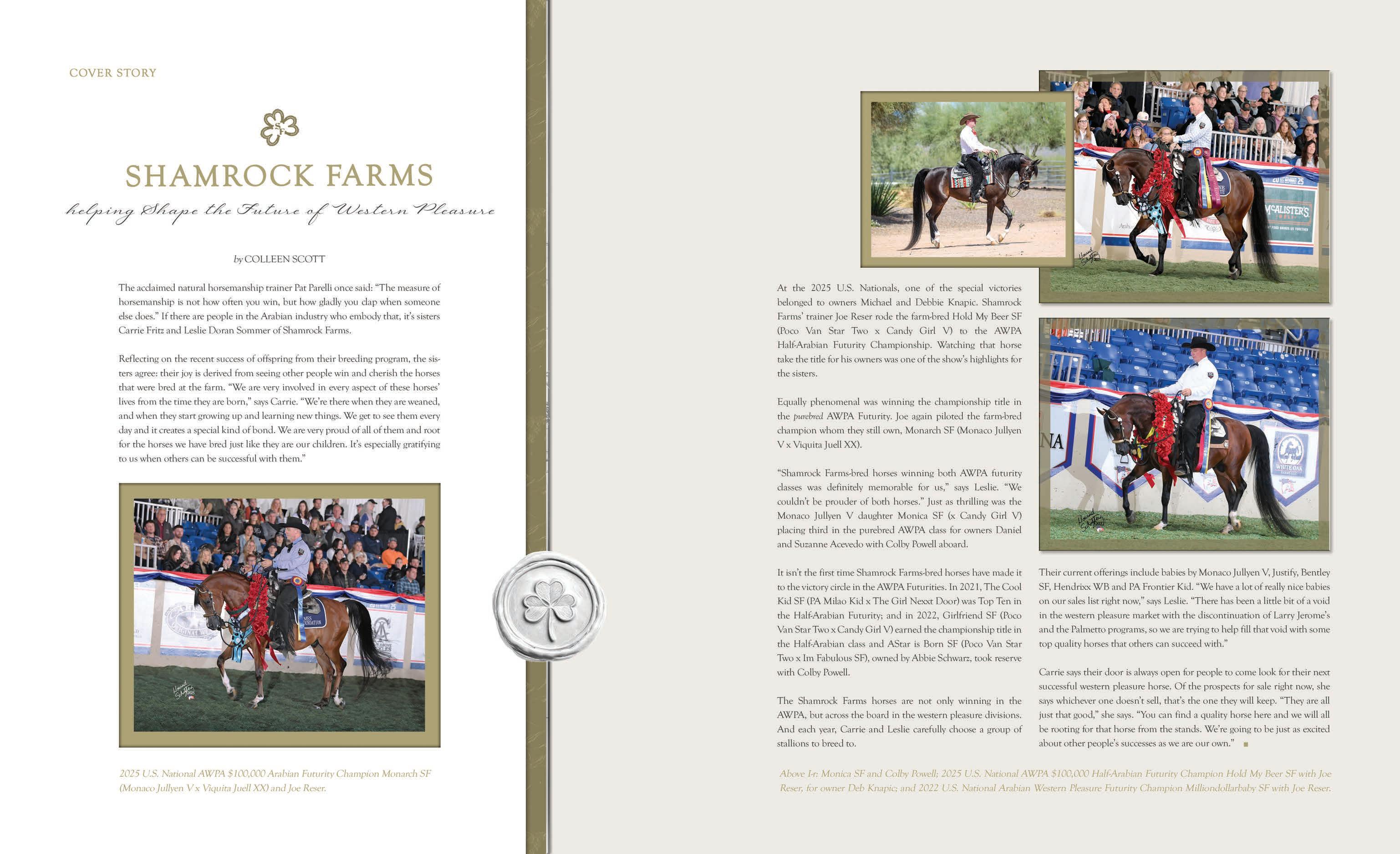 In November 2025 – under the direction of Colby Powell Performance Horses – they announced the exciting news that this year there were 10 private breedings available, along with the Scottsdale Signature Stallion (SSS) and Arabian Western Pleasure Association (AWPA) auction breedings. A few of those o erings, including the AWPA breeding, have already been claimed, but interested parties can still reach out to Jackie or Colby Powell to be part of this exciting rst year (with mares bred using the ICSI technique).