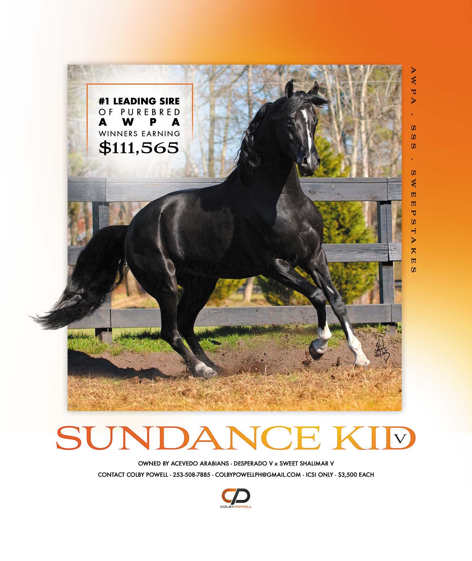 Sundance Kid V (Desperado V x Sweet Shalimar V, by Ali Jamaal) has sired 478 registered foals. He was not just a profound breeding stallion, but he also left a mark that will impact every generation of Arabian horse to follow. And now that number can grow thanks to Acevedo Arabians and Colby Powell Performance Horses.