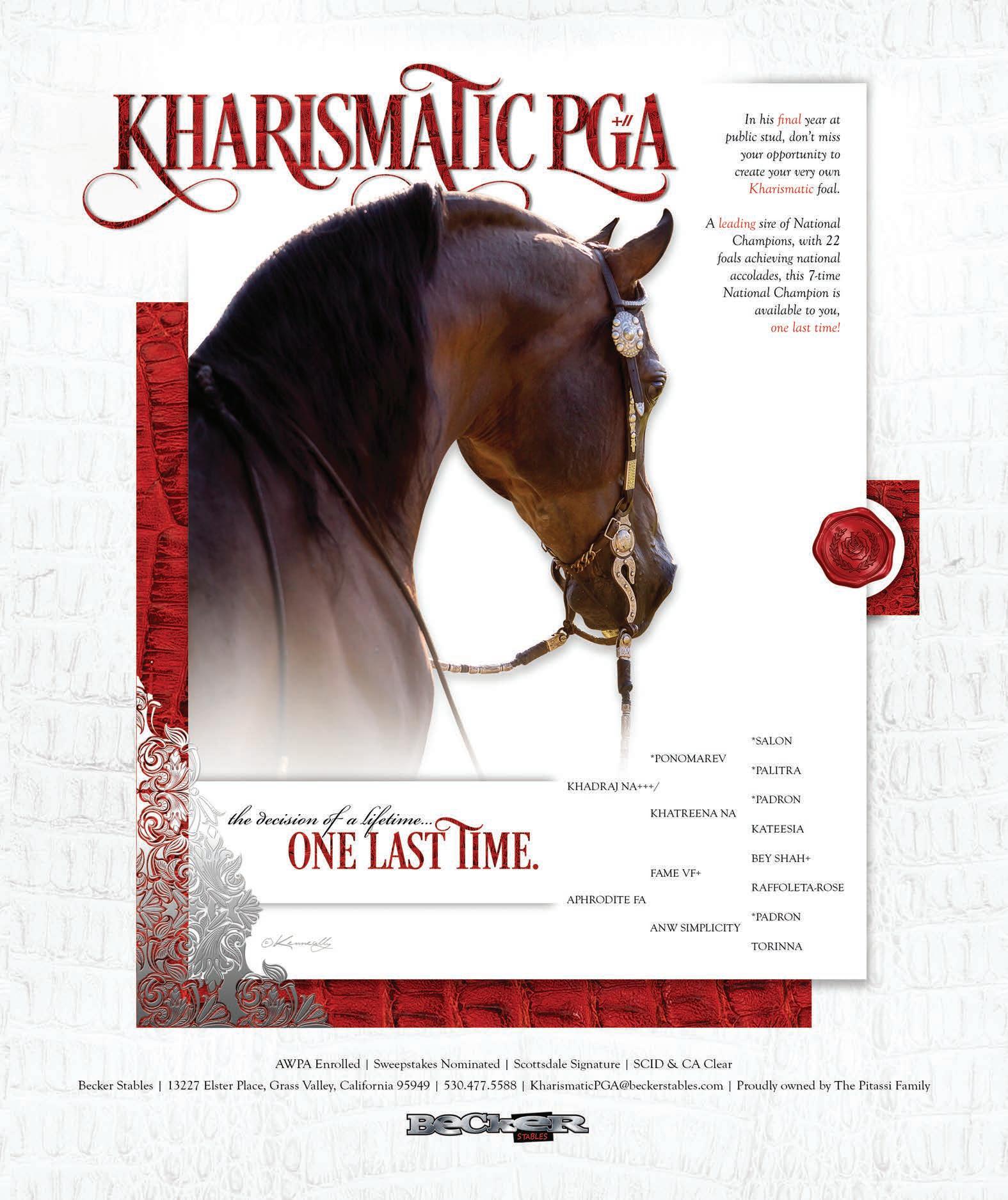 In addition to keeping him present and relevant in the show ring, they have also made great e orts in Redemption’s breeding career. Even with their combined 60 years of experience in the Arabian horse industry, this is the rst breeding stallion they bred.