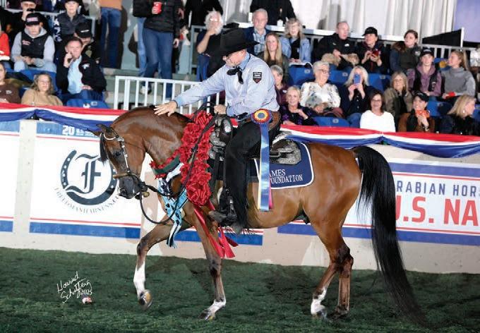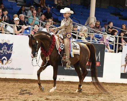 Redemption HA (Bentley SF x Heartbreaker RA, by Magnum Psyche) has always been an easy horse. He has a loving and peoplerst personality (more on that later). at mixed with his conformation and natural ability makes his job as a western pleasure horse seamless. His show record with trainer Josh Quintus re ects this truth. e two have been consistently at the top half of their classes, including two reserve national championships and winning the Arabian Western Pleasure Junior Horse at the Scottsdale show as a 4-year-old.