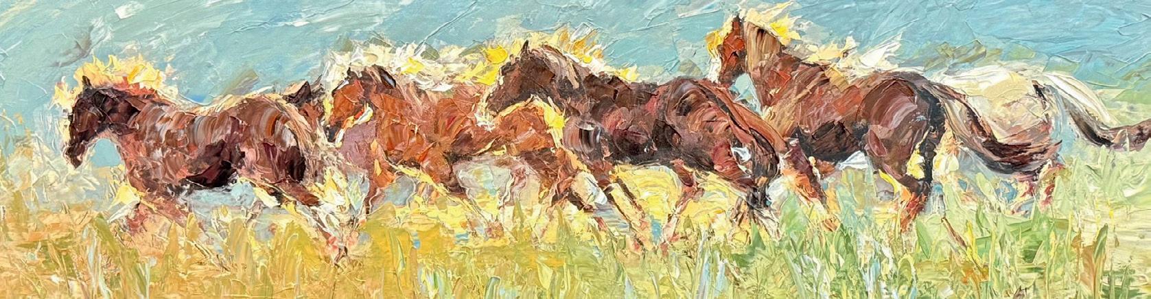 She is a self-taught artist and her upbringing with horses can be seen refl ected in her works by her attention to detail, accurately portraying correct equine conformation, spirit and musculature.
