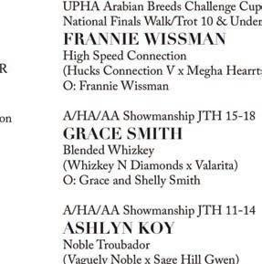 2022 Youth National Arabian Horse Foundation Scholarship Winners 174 Canada’s National Arabian Championship … From Vision To Reality 184 The 56th Annual U.S. Nationals—History & Memories Made by Ally Edwards 188 2022 U.S. National Leaders 254 The Magical Weekend Called KEYSTONE 266 2022 APAHA Trainer Challenge Cup Winners