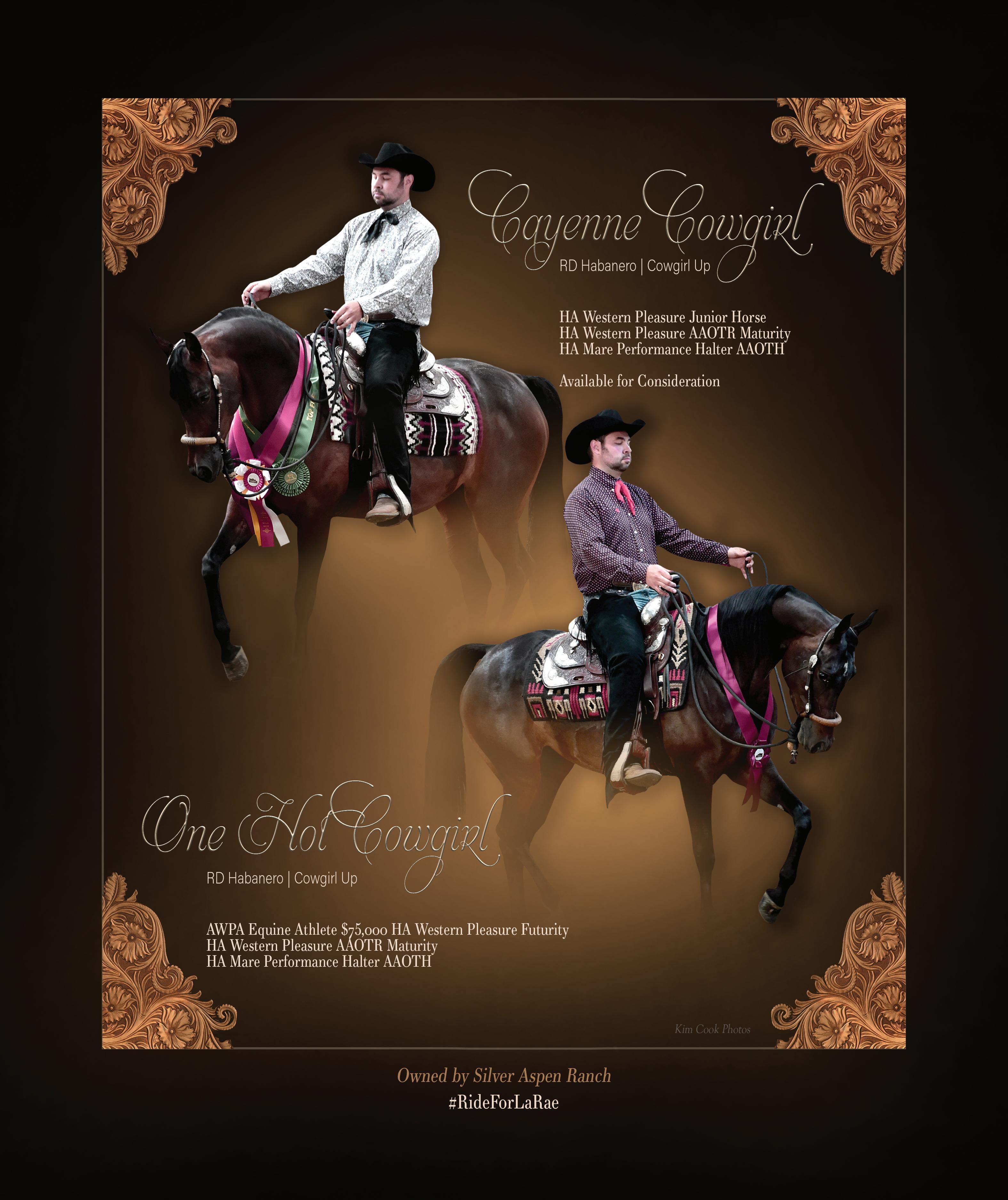 At two years old, LaRae won her first class riding Quarter Horse Jody Code, owned by Bruce Wilke. Her mother, Donna, sewed LaRae’s show attire herself, including the chaps. The Silver Aspen Ranch took hold, the roots cementing a firm foundation for what was to come. And along the way, for over more than 50 years, Silver Aspen’s motto mirrored LaRae’s …