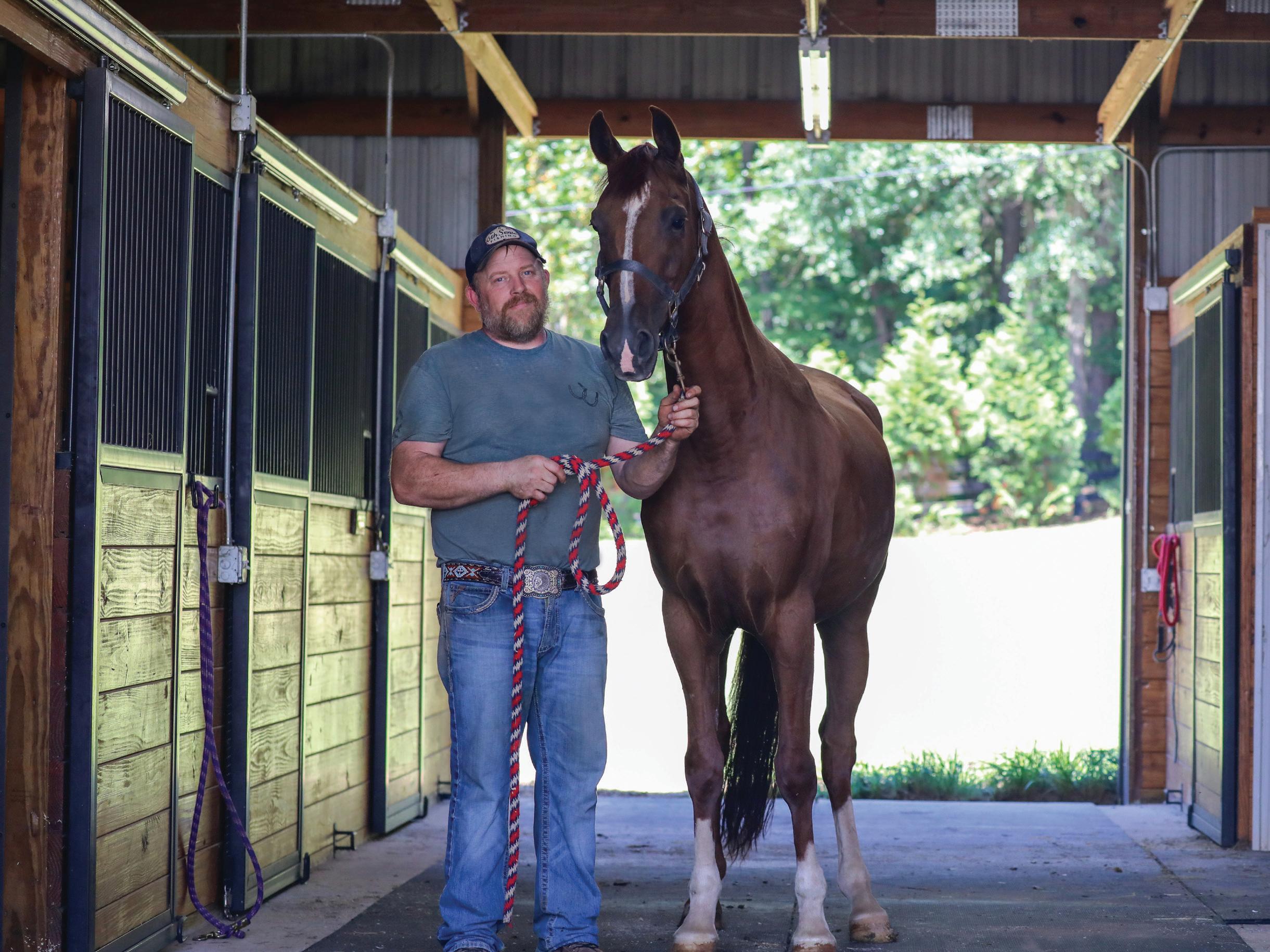 Kip Bishop of KB Horseshoeing has been shoeing Connor Koch’s horses for 8 years. Kip cites one of his biggest accomplishments and proudest moments being part of Helluva Storm LR (“Taz”) winning his National Championship in Park.