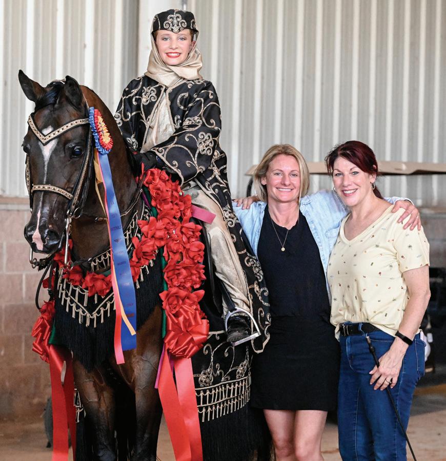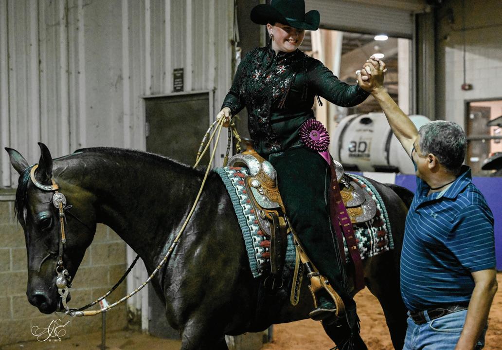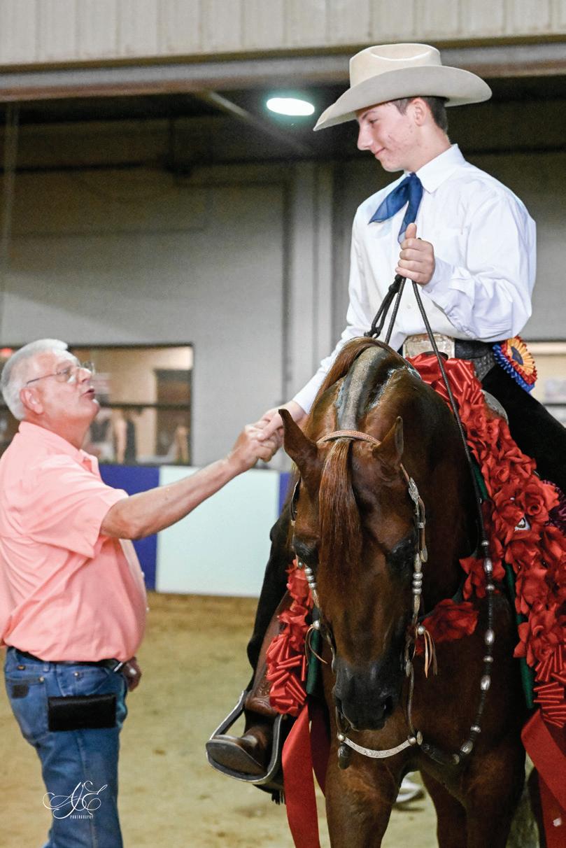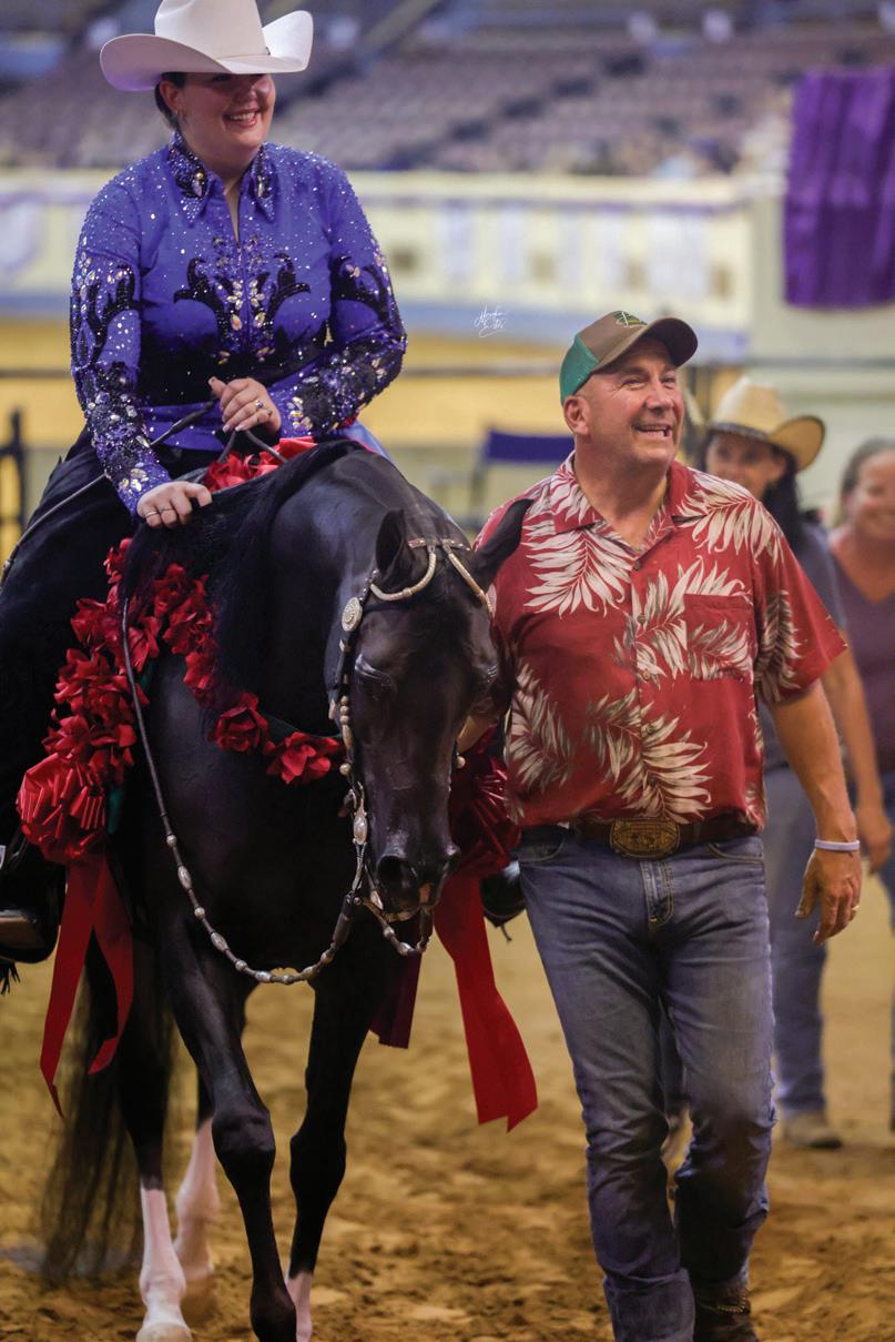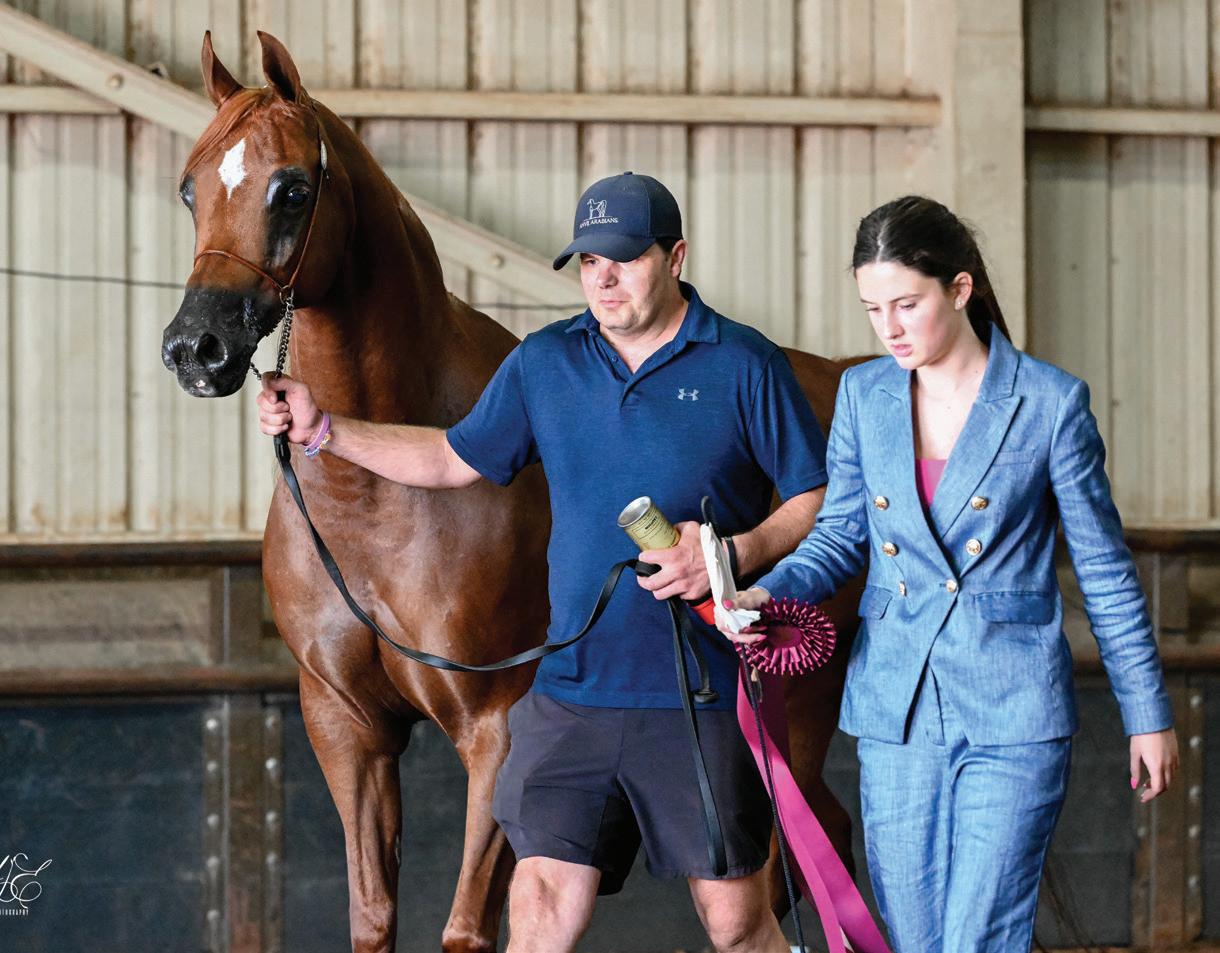 Left: Amandas Song and Reese Tierney, 2021 Youth National Arabian Western Pleasure JTR Select 14 & Under Champions. Above from top: Shannon, Reese and Amandas Song in the 2022 Youth and Mid Summer Nationals It’s All Relative Western Jackpot class; and Breeder Michael Brooks Carroll with Amandas Song and granddaughter Reese.