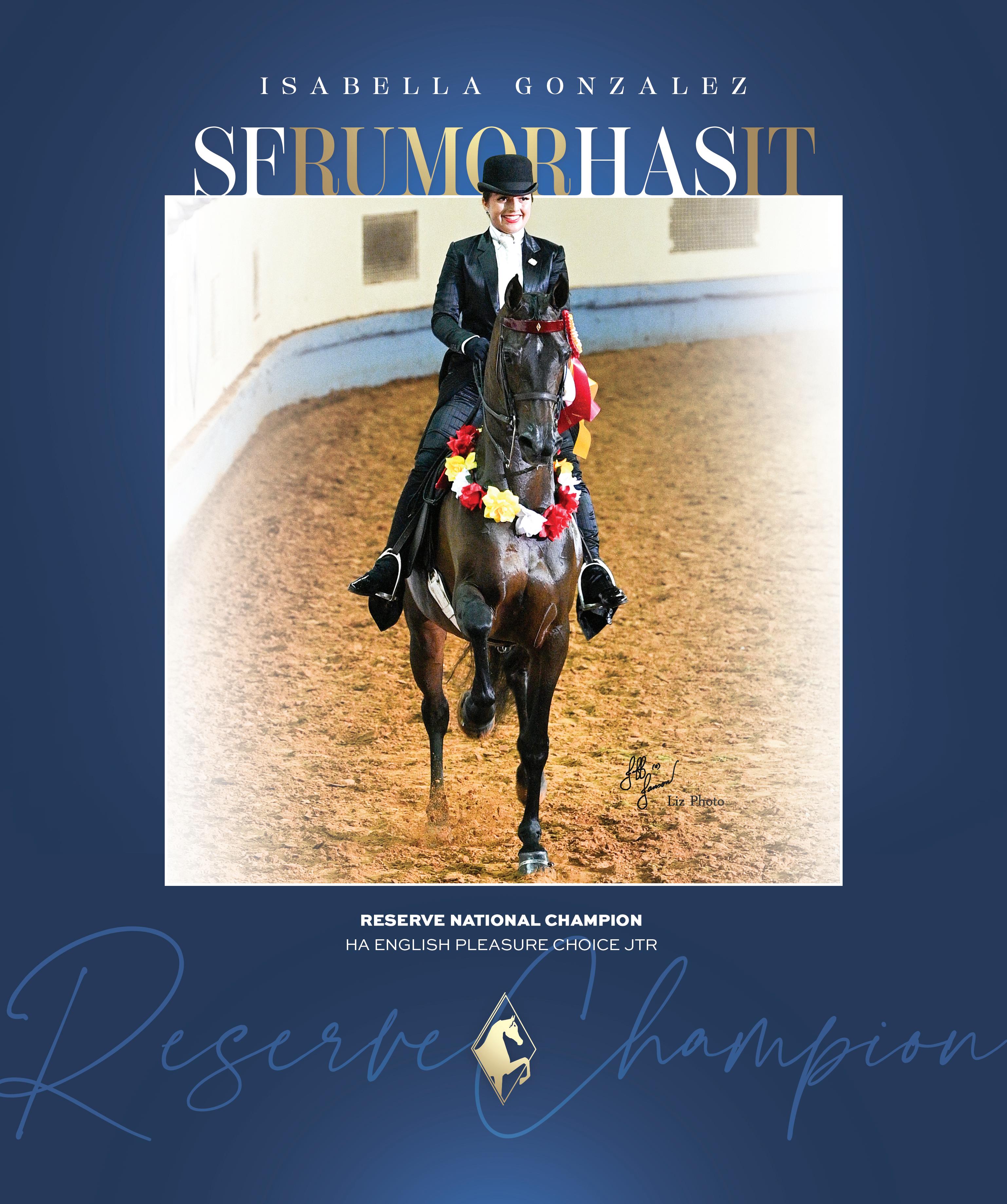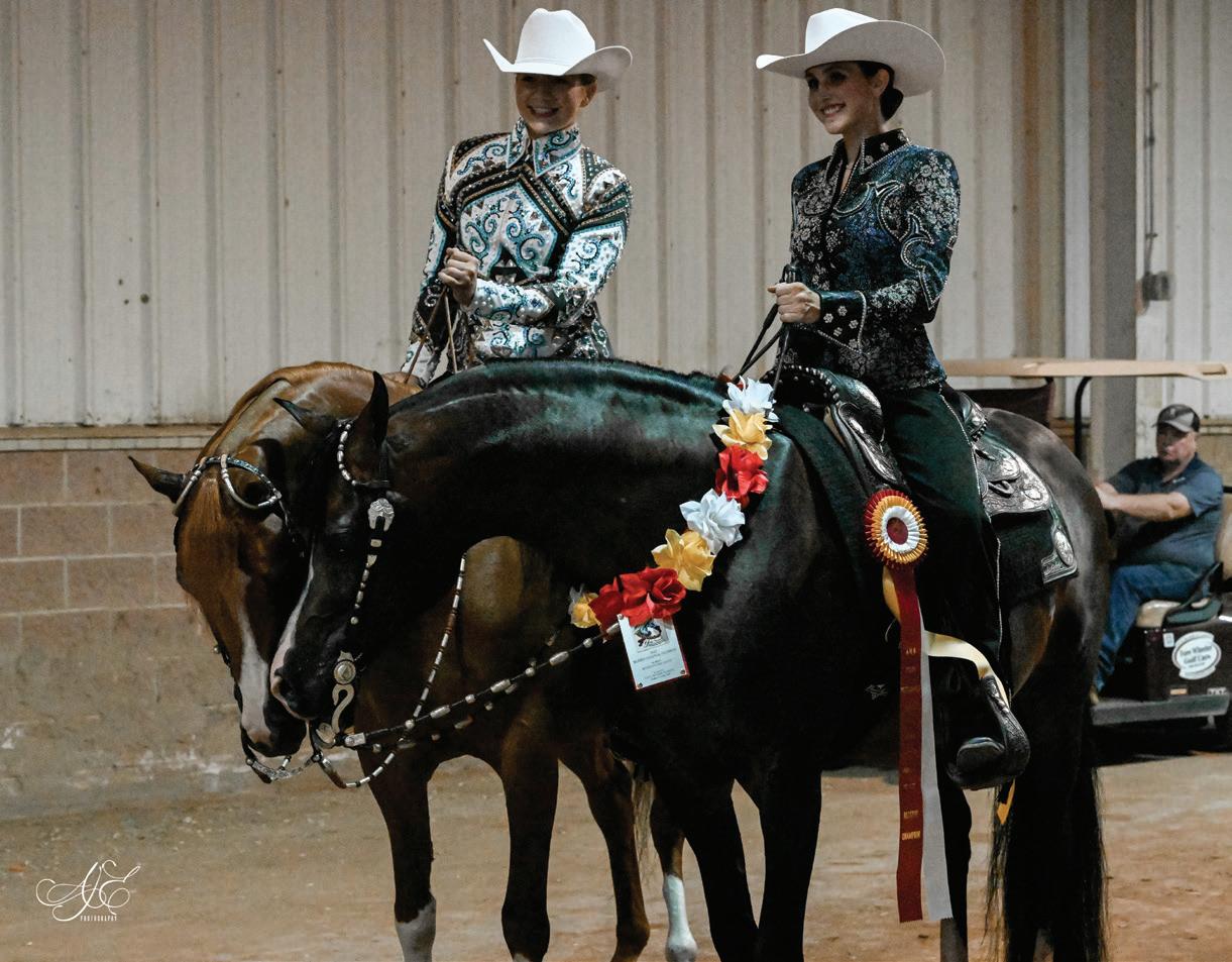 Drawn to greater heights, the 2020 Youth and Mid Summer Nationals beaconed. Shannon and Song won top ten prizes in large, deep Arabian Western Pleasure Select Rider AATR and Arabian Western Pleasure AAOTR 40 & Over, and both he and Reese proudly came home with roses, winning Reserve Champion Arabian Western Pleasure Walk/Jog 10 & Under.