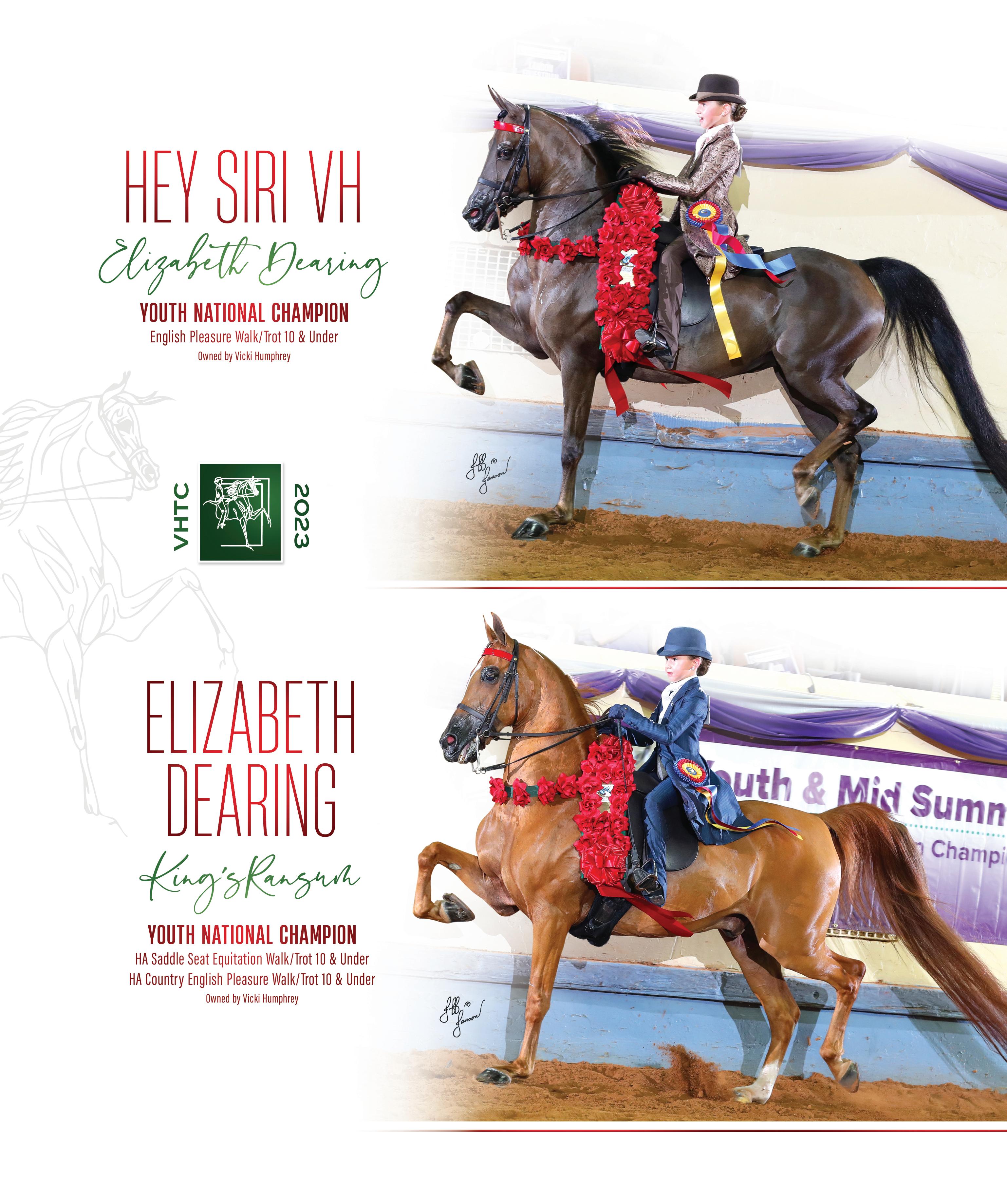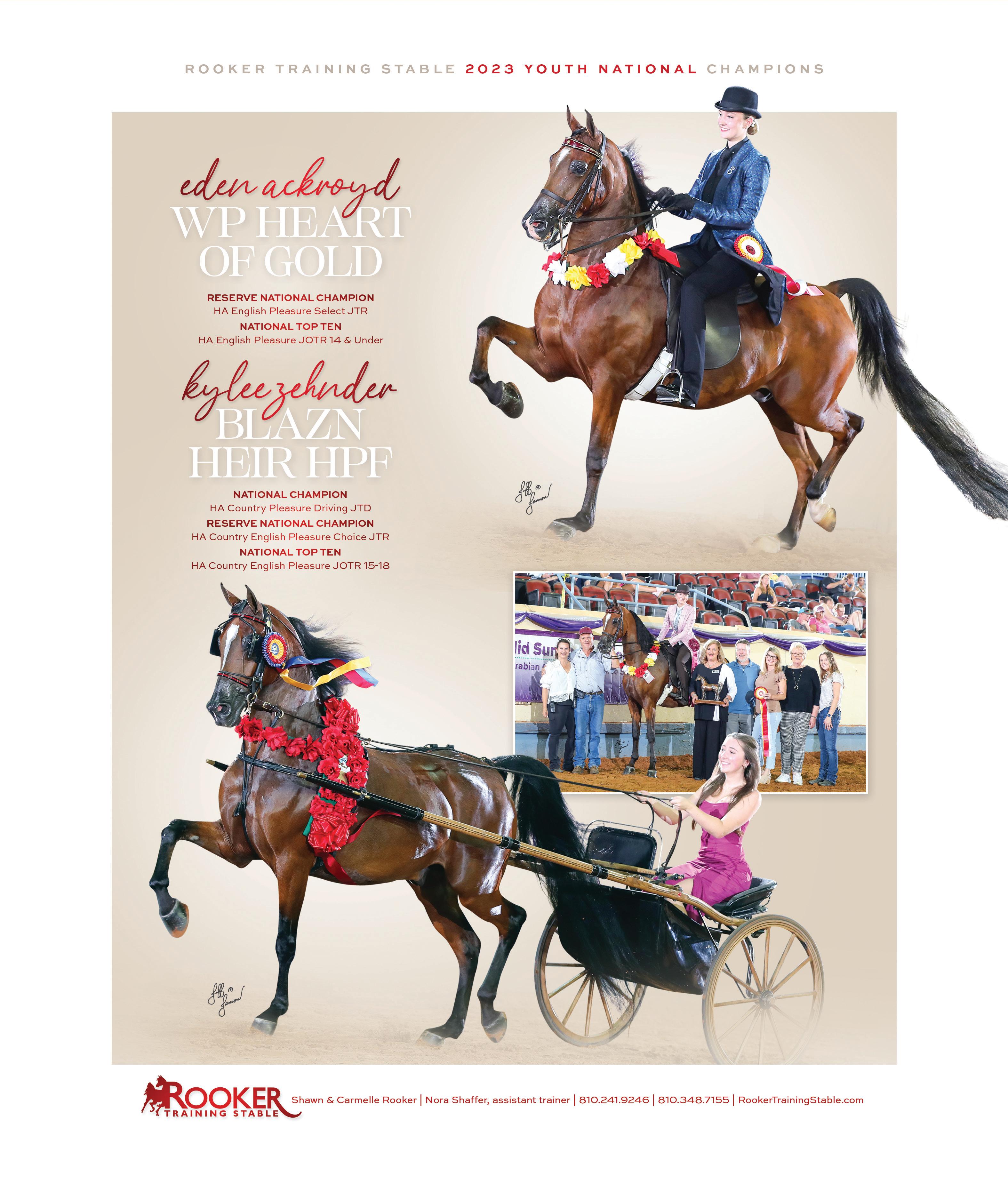 GAYLORD COMING UP ROSES 4x 2023 Youth National Champion Natalie Jane Coached by Rick Nab • Trained by Colby Powell Performance Horses • Colby Powell • (255) 508-7885 • ColbyPowellPH@gmail.com © 2023 National Horseman Publishing