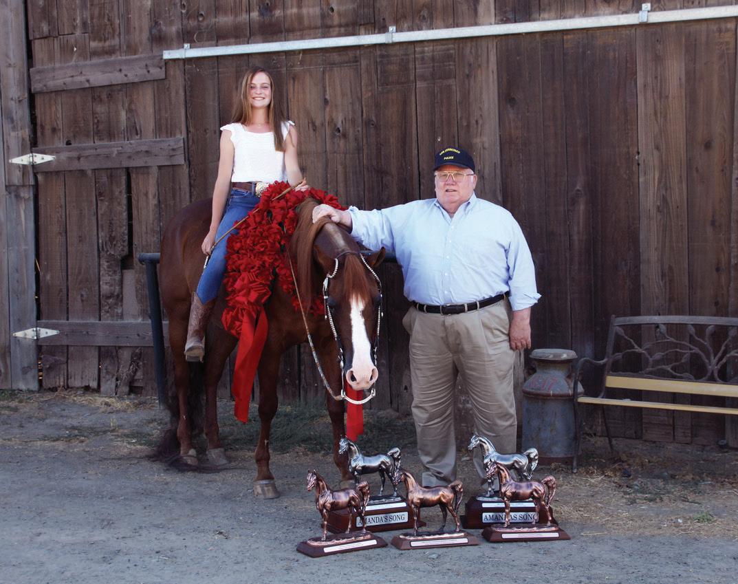 Initially trained by Brett Becker and professionally prepared for successful showing by Rich Doran, it was always evident that Song was a shoo-in for western pleasure competition—although at his own classic, slow pace. Though shown sparingly as a junior horse, Song won many a blue ribbon at the Northern California horse shows.