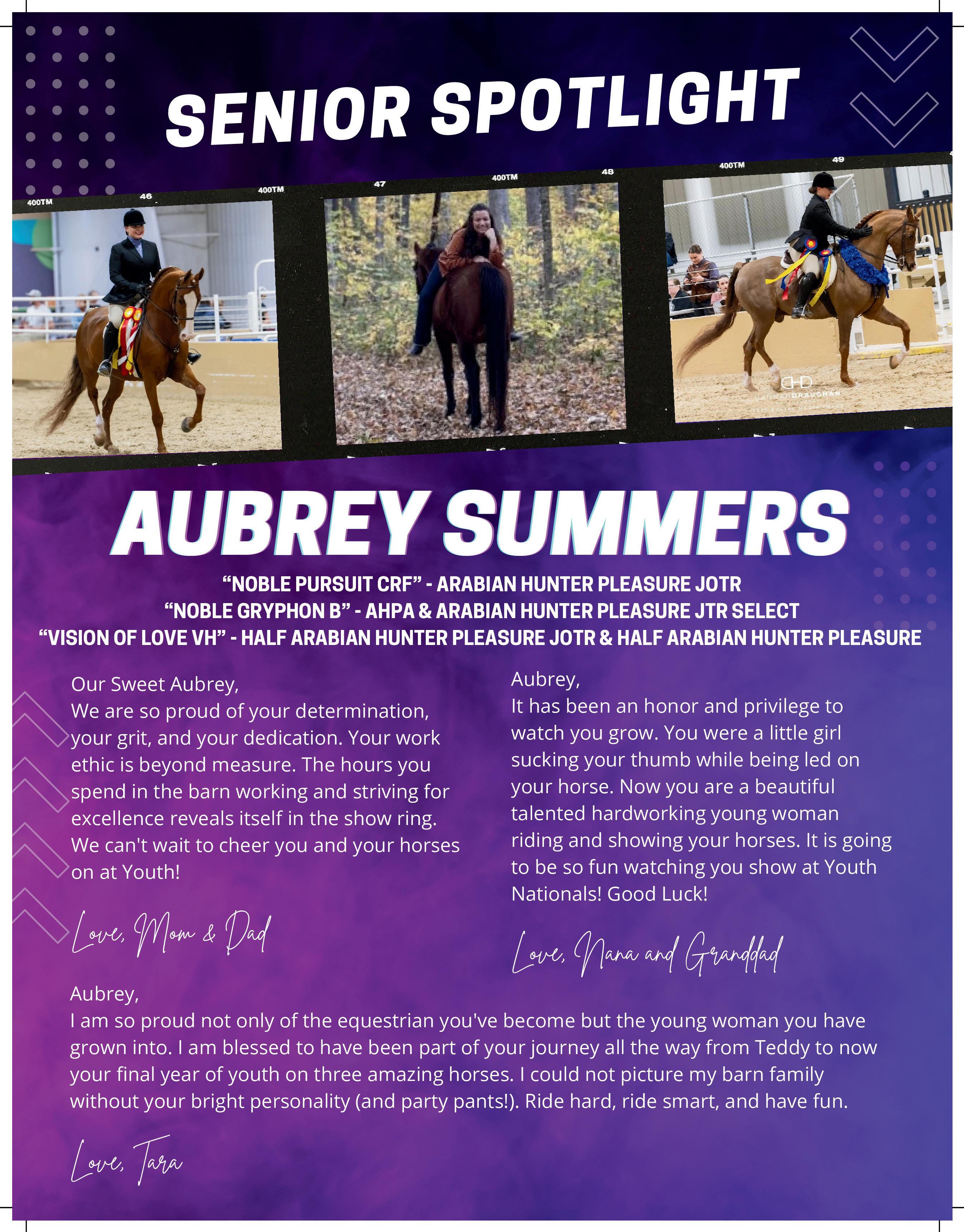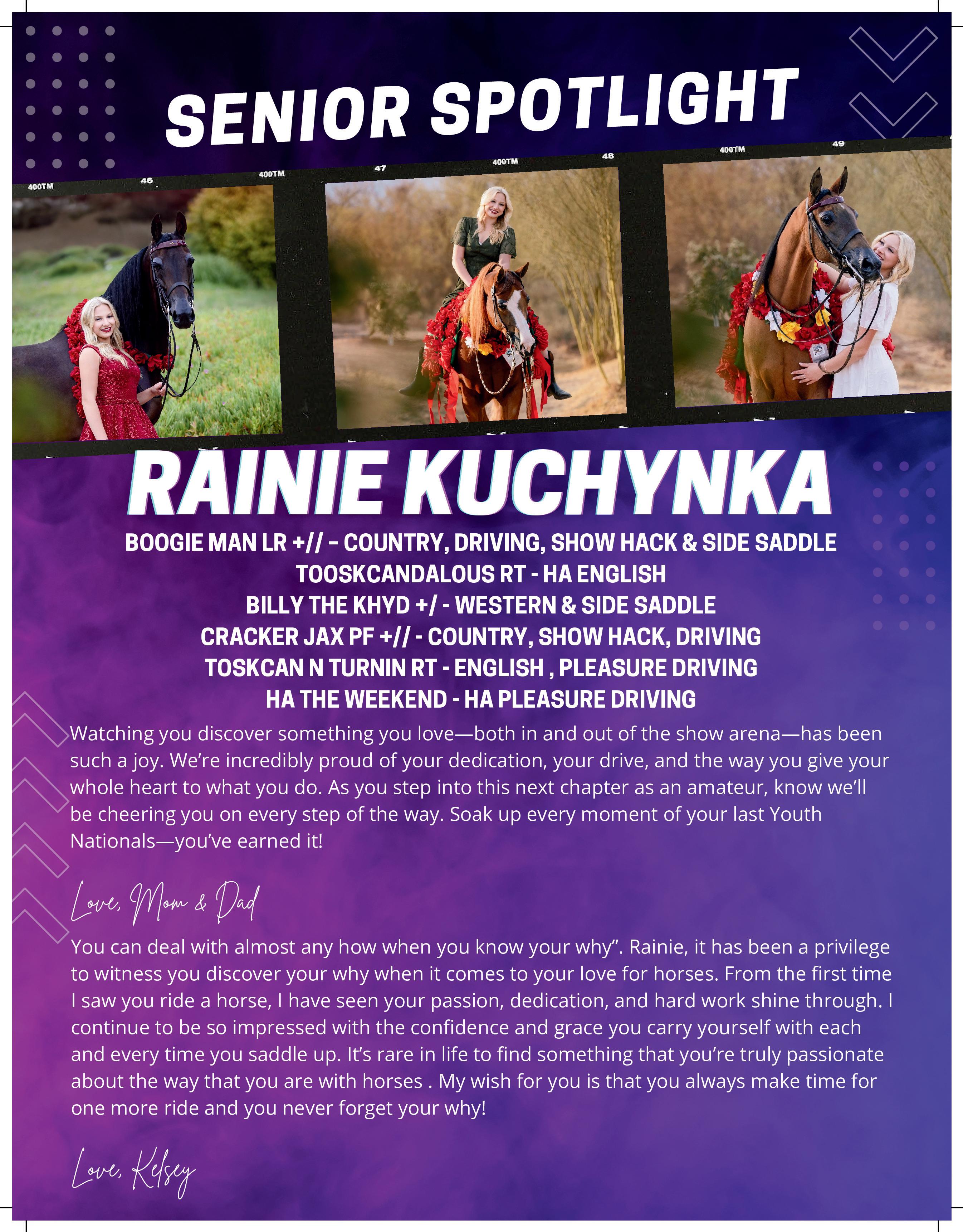 These classes will be paid out based on the 50% rule. These classes are open to Sweepstakes and non-Sweepstakes horses and only the Sweepstakes horses enrolled as a Breeding or Original Entry are eligible to receive prize money. These classes will be available only to horses enrolled as a Breeding or Beginning in the 2026 competition year at Mid Summer Nationals, these classes will be available only to horses enrolled as Breeding or Original entry.