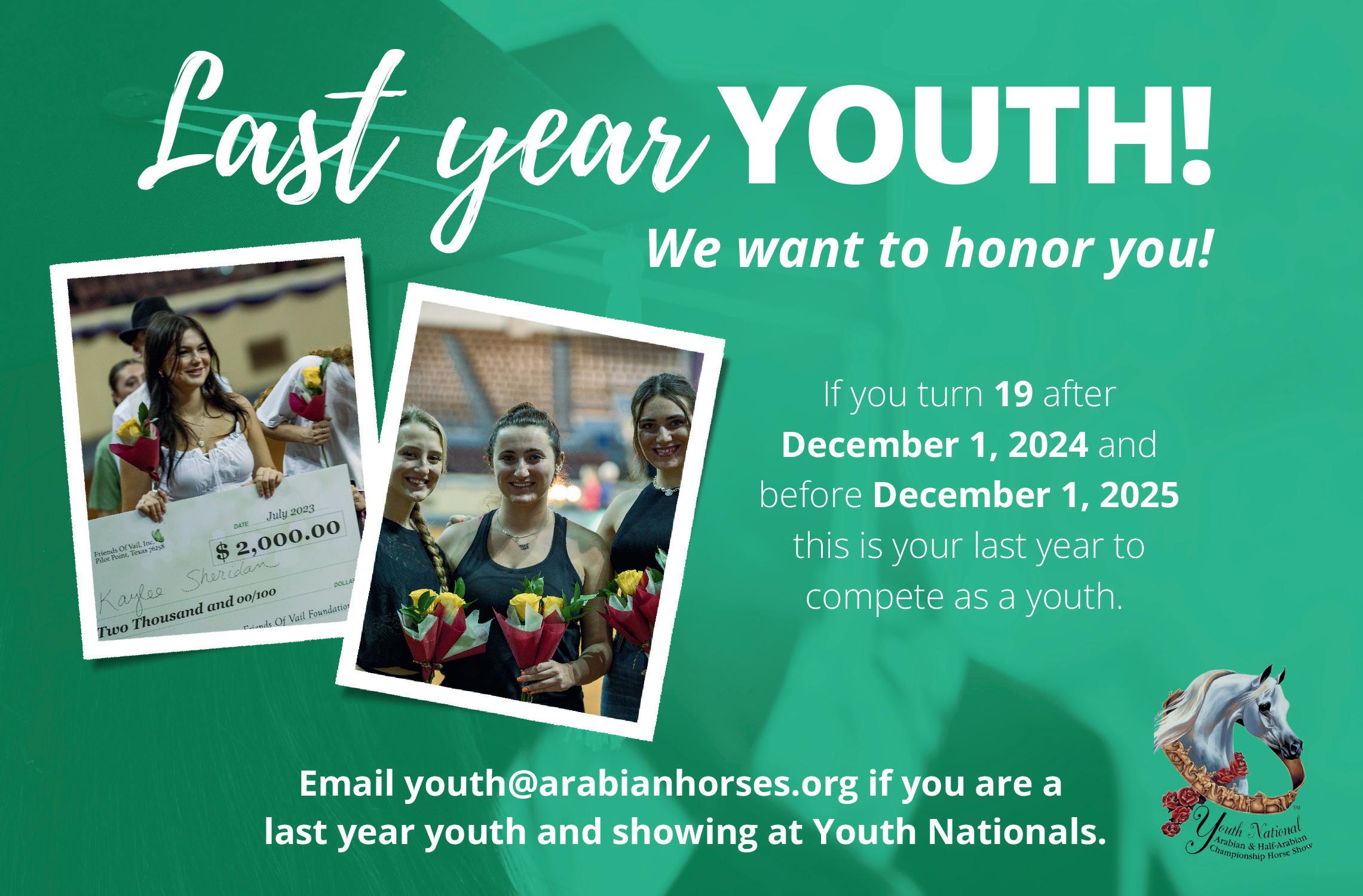 These classes will be paid out based on the 50% rule. These classes are open to Sweepstakes and non-Sweepstakes horses and only Sweepstakes horses enrolled as a Breeding or Original Entry are eligible to receive prize money. These classes will be available only to horses enrolled as a Breeding or Original Entry in the 2026 competition year at Youth & Mid Summer Nationals.
