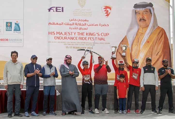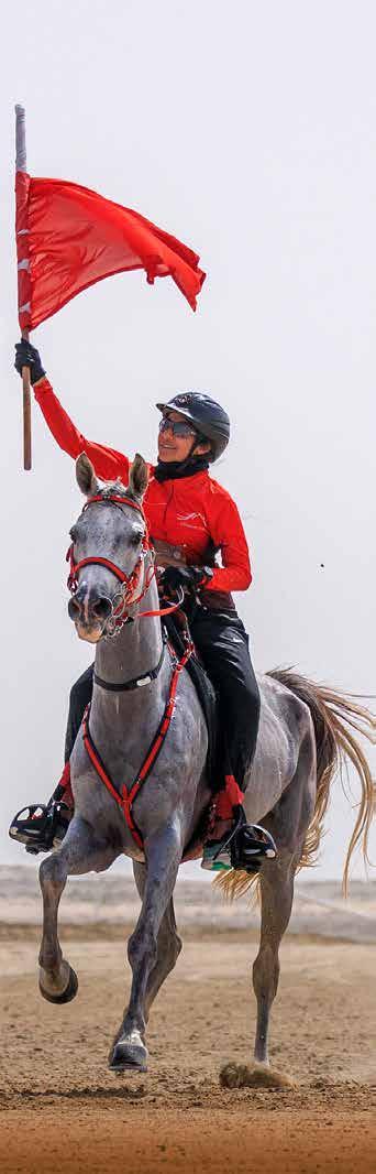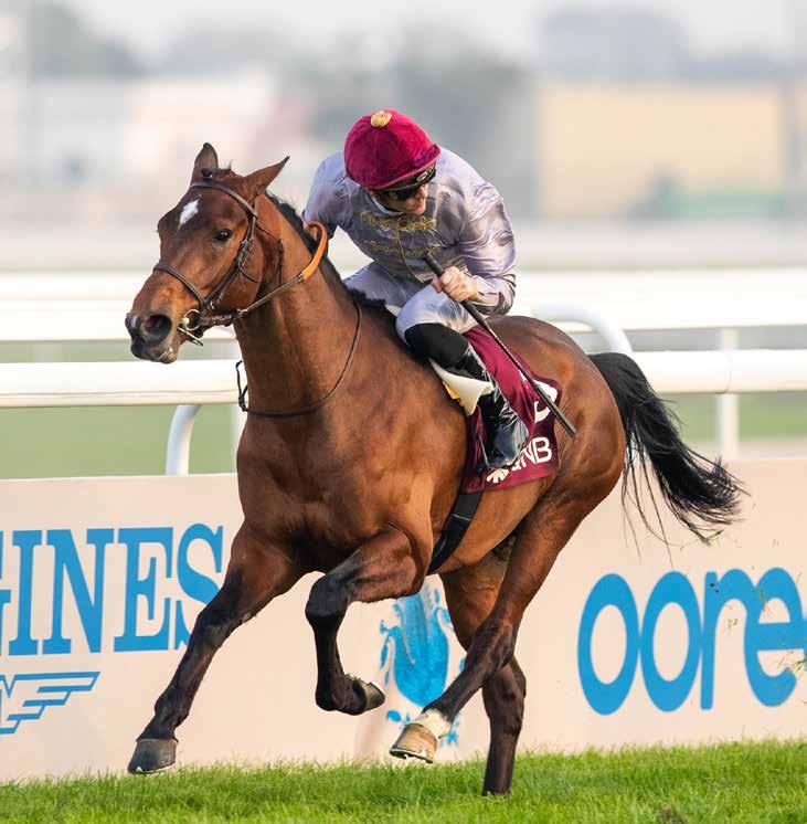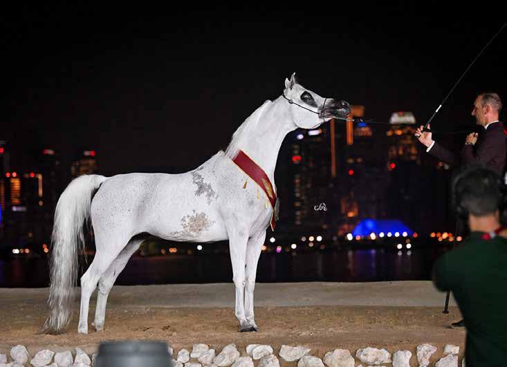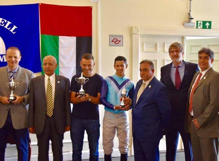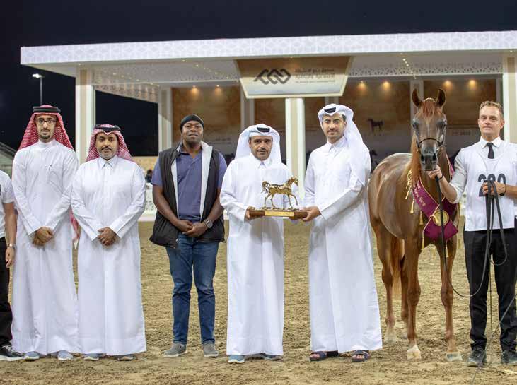 The final race in the card saw a third victory on the day in the colours of Wathnan Racing and a double by the trainer / jockey combination of Alban de Mieulle and Alberto Sanna, who teamed up with Bakir (QA) (Amer x Zabieh) to come on top by three quarters of a length in the day’s feature, the Class 1 contest for threeyear-old and older Local Purebred Arabians, to win the The Late Sheikh Jassim Bin Mohammed Trophy. The Al Shaqab Racing owned and Jean de Mieulle trained Al Mirage (QA) (AF AlBahar) was the runner up under jockey Faleh Bughanaim. Last year’s winner, Sealine (QA) (Amer) finished a further length behind in third under jockey Soufiane Saadi, giving the winning owner and trainer another prize in the 1500m race. Under the patronage of His Excellency Salah Bin Ghanem Al-Ali, Minister of Sports and Youth, the Qatar Racing and Equestrian Club (QREC) organised the Late Sheikh Jassim Bin Moham-