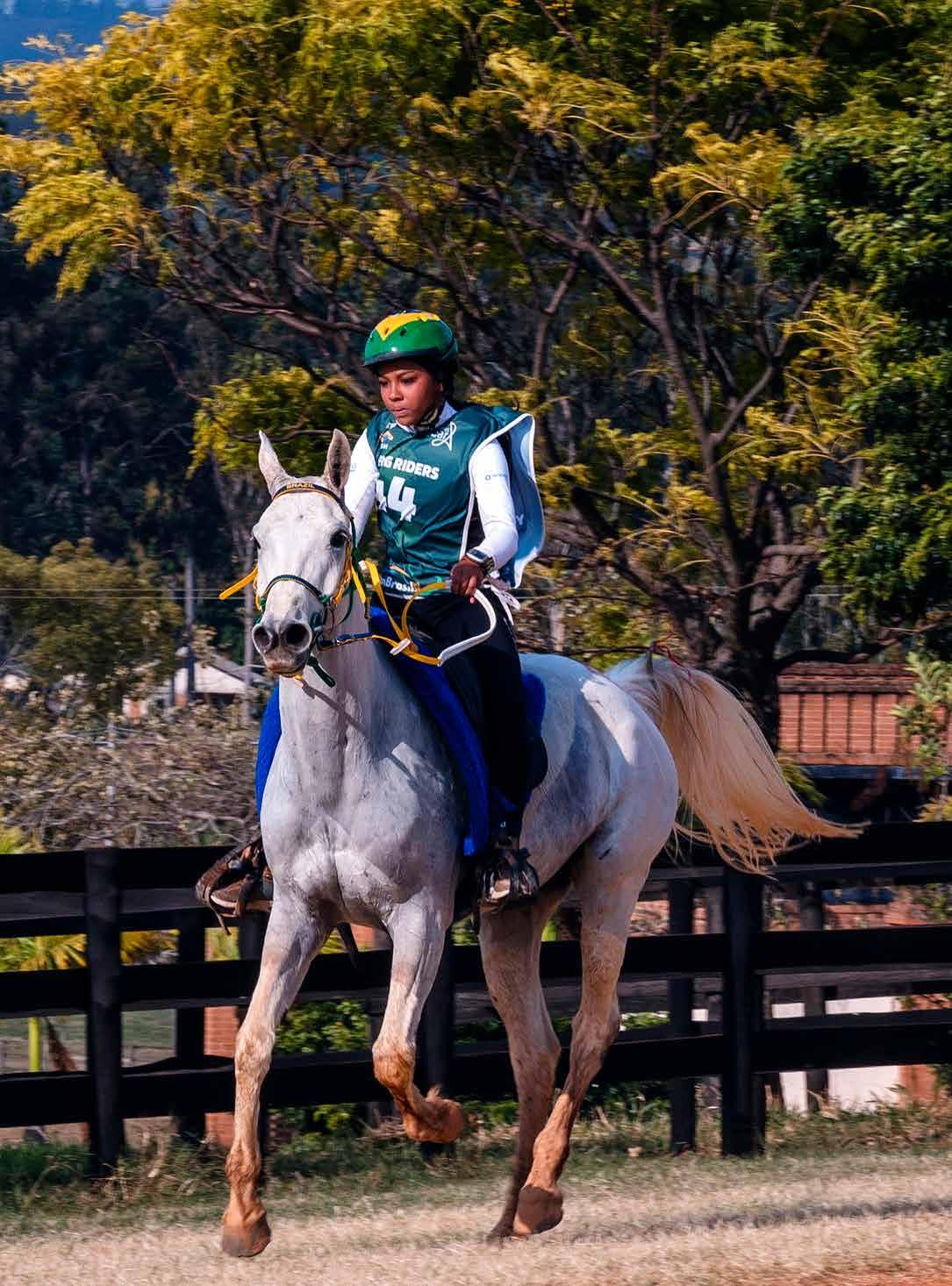 Her first event took place on July 17, 2021: the Triunfo Cup Endurance Ride in Palmeira (PR), covering 40 km on HDM Peregrino Ellpod, while her father rode Vaiolet JLA. Four months later, she was already participating in a major competition — the III International Endurance Festival of Campos Gerais.