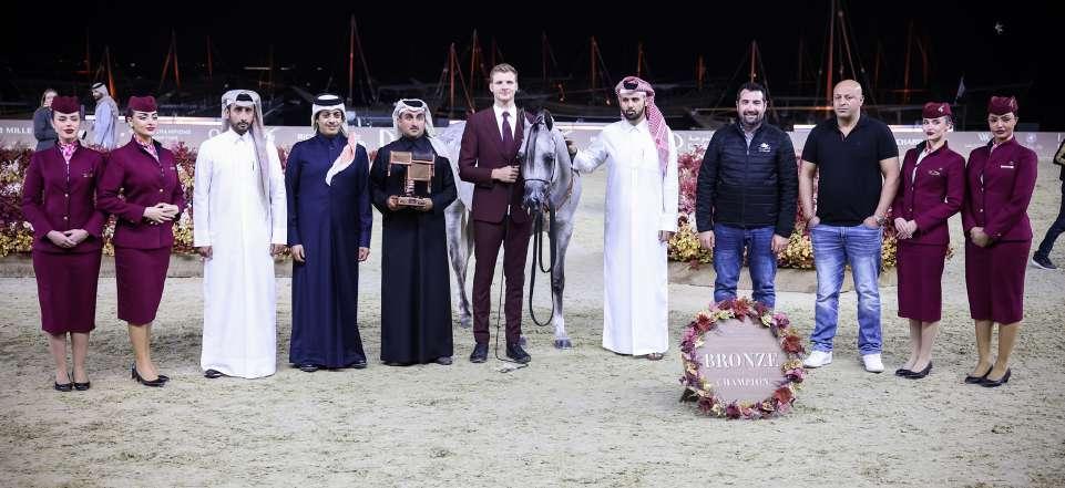 Nawash x Aj Amandari), also bred and owned by Ajman Stud, demonstrating their commitment to excellence. Meanwhile, the bronze went to the distinguished Mishref Al Shaqab (Eks Farajj x Basjirah Al Shaqab), bred and owned by Al Shaqab, a Member of the Qatar Foundation.