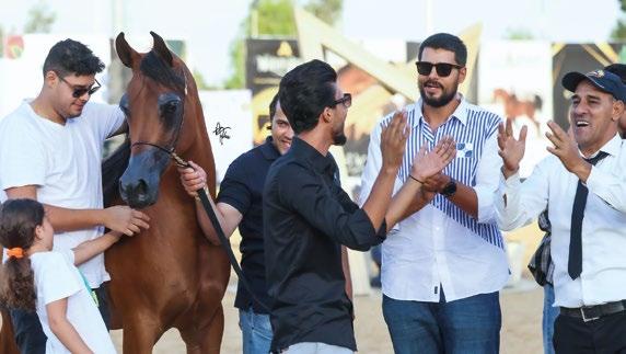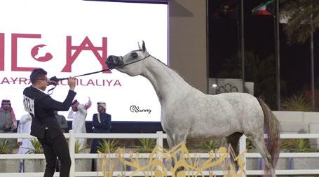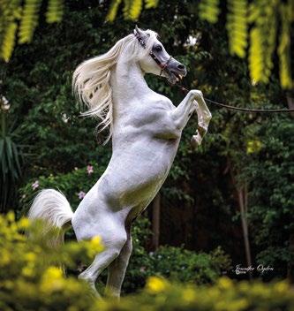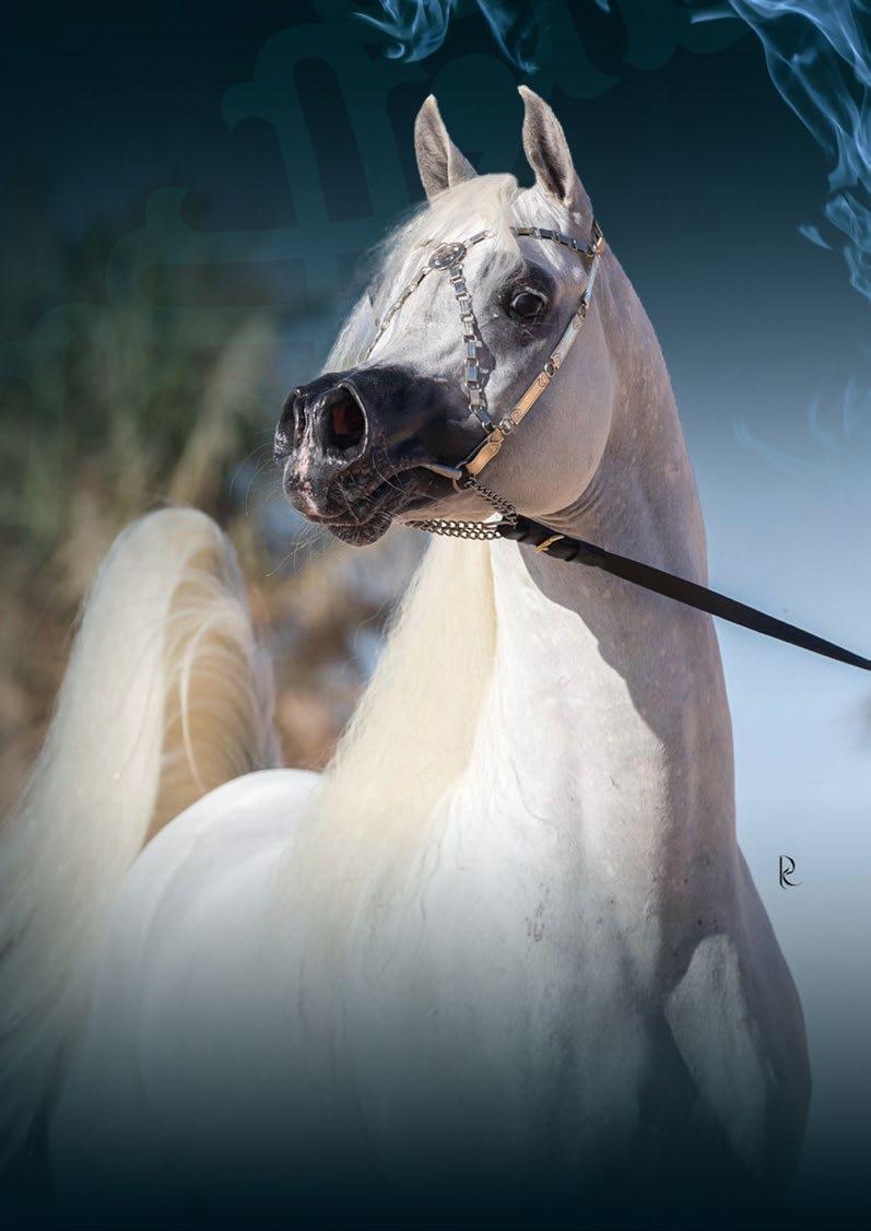 daughters of Galagel AlBadeia (16.11.1996) (Imperial Madori x Anhar AlBadeia). Moreover, Zahwa AlBadeia (12.09.1997) out of Sodfat AlBadeia (1987) (El Walid x Kamar AlBadeia); Farial Rahim (13.12.2000) out of Set El Hosn Rahim (1998) (Imperial Madori x Farha 1995 by Wasel x Sofsafa), a Hadba Enzahiya mare from the important Lateefa’s family (10.11.1945) (Gamil III x Salwa). All mares who produced champions or were themselves great champions. AlBadeia Stud Farm also inherited important sires from Farid AlBadeia. Among them was the grey Hadban Enzahi, Nagham AlBadeia (05.02.1998) out of Dandanah AlBadeia (04.04.1994 (Fayrouz AlBadeia x Halawat AlBadeia), a maternal sister to Ibtehag AlBadeia (02.01.1993-2018). e bay Dahman Shahwan, Burhan Sakr (1999) out of Alidarra (1989) (Alidaar x Glorieta Serima), from the family of Ansata Sabiha (01.03.1968) (Ansata Ibn Halima x Sabrah). And last but not least, the