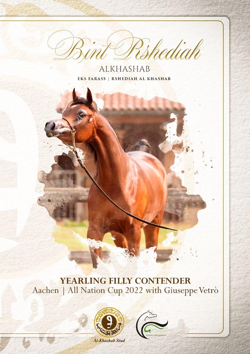 Bint Rshediah Al Khashab (EKS Farass x Rshe diah Al Khashab) bred and owned by Al Kha shab Stud, and presented by handler Giuseppe Vetrò.