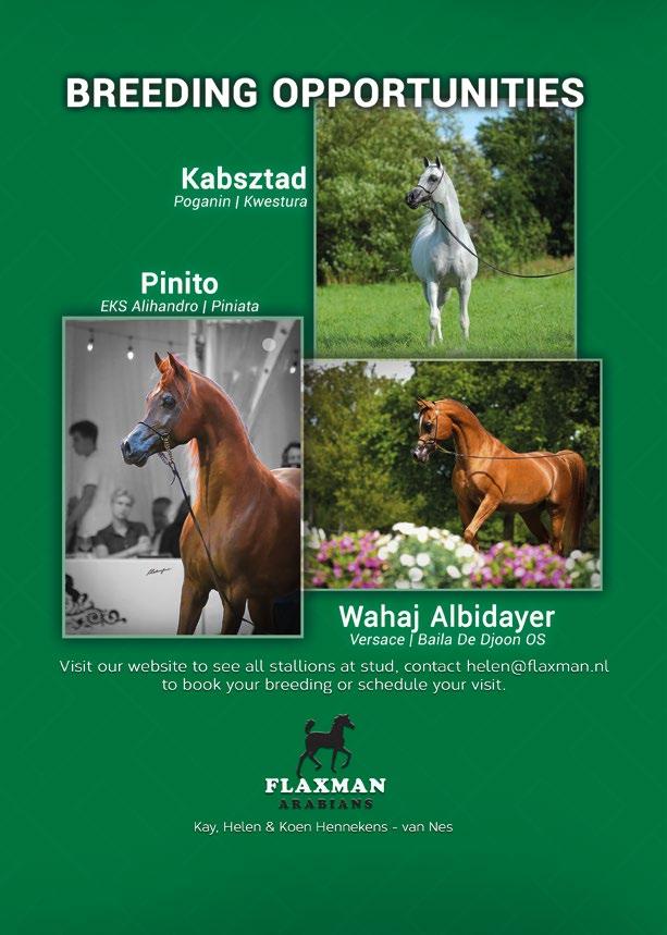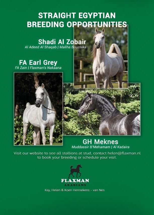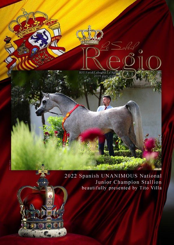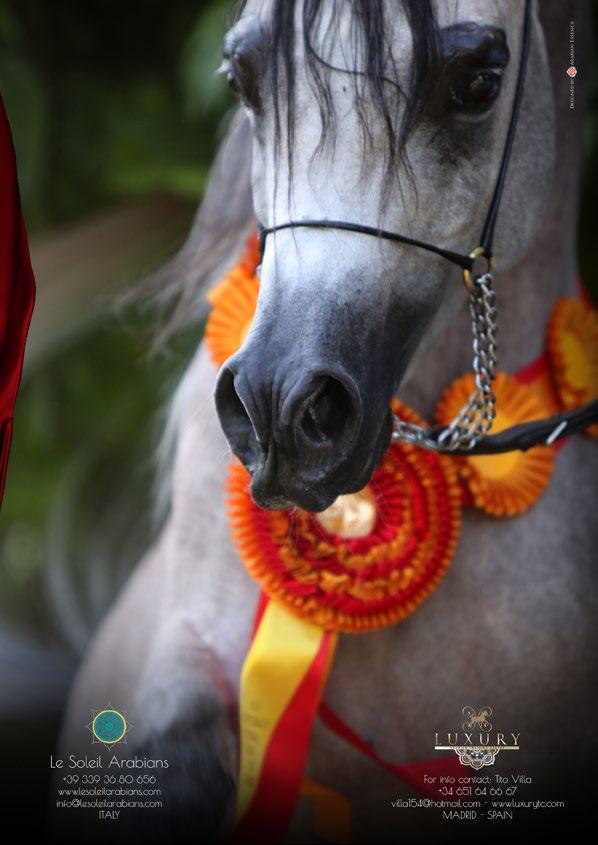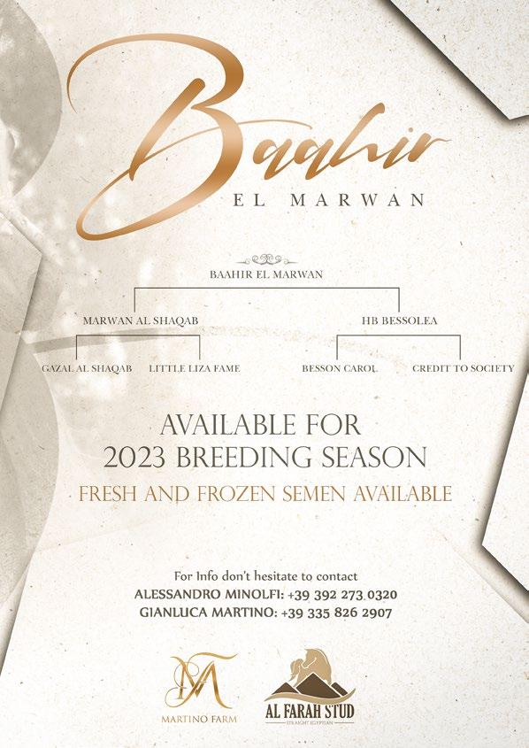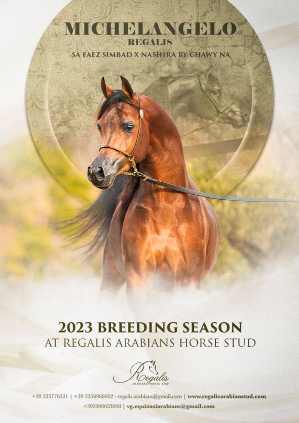 Eric Gear An exciting equestrian experience celebrating the beauty and chaKurdistan region has come into existence in the ancient land of Sumerians, the earliest known civilization in history. The show was organized by the Breeders Association in Iraq and coordinated by Mrs Nesrin Hegazy (Egypt), with the support of Ecaho, Horsmunity, and Arabian Horse Magazine. Its first edition took placeful Erbil Equestrian Club and motivated a good number of local breeders and stud owners to enter their horses to compete for 750,000 USD in total prize money. There were actually two different competitions at the show, the first being the Straight Egyptian, and the second being the Purebred. The judges officiating at both shows were Mrs Irina Stigler (Russia), Ms Noemie Zeller (Switzerland), Mr Fausto Scanzi (Italy), Mr Al Marazeeq Abdelaziz (UAE), and Mr Medhat Gaber (Egypt). With the rank of DCs: Mr Farhang Fazeli (Iran), Mrs Christine Keyser (Norway), and Islam Mahdy (Egypt). In his qualities of Ringmaster: Mr Mateusz Jarkowski (Poland). Barmaki (Jordan) and Mrs Yassmin Atieh (Jordan). Those who couldn’t attend Erbil but wanted to follow the event were able to watch live stream prepared by Arabian The Straight Egyptian Championship started on December 9, 2022, at 17:00 Asia/ Baghdad (15:00 Europe/Rome) and ended 1ST IRAQ SUMER NATIONAL SHOW STRAIGHT EGYPTIAN & PUREBRED 9-10 DECEMBER 2022 ERBIL KURDISTAN REGION IRAQ 118 1st Iraq Sumer National Show 2022 7th FUJAIRAH INTERNATIONAL ARABIAN HORSE CHAMPIONSHIP 15-16-17 December 2022 WRITTEN BY SONJA SMALDONE he 7th Fujairah Arabian Horse International Championship organized by the Emirates Arabian Horse Society under the kind patronage of His Highness Sheikh Mohammed bin Hamad Al Sharqi, Crown Prince of Fujairah and Chairman of the Fujairah Culture and Media Authority (FCMA) – and managed by Mr took place from 15th to 17th December 2022 in the arena adja cent the emira te’s historic fort. Broad participation of horse owners and stables from inside and outside the country, with a total prize pool of 4 million dirhams. A total of 339 compete in a beau ty context richly en dowed with titles, which drew first-class breeding pro grams from Arabian countries. The 2022 Judging Committee featured Mr Abdelrazek Ahmed (Egypt), Mrs Darius Claudia (Germany), Mr Moschini Christian (Italy), Mrs Stigler Irina (Russia), Mr. Bialobok Jerzy (Poland), Mr Detailleur Koenraad (Belgium), Mrs Van Hee Martine (Belgium), and Mrs Weidner Michaela (Germany). All horses got scored according to the 5 Topics system with the half point for Type, Head and Neck, Body, Legs and Movement. With the rank of Disciplinary Commissioners: Mrs Keyser Christine (Norway), Mr Ouelhazi Kaies Bin Hadi (United Arab Emirates), (Egypt), Dr Gill Ummar Raza (United Arab Emirates), Dr Suryawanshi Sujeet Bhaskar (United Arab Emirates), Mrs Zouaghi Farah (United Arab Emirates), and Mr Tayfour (United Arab Emirates). In their role of Ringmasters: Dr Wahab ben Ali Amira Abdel (United Arab Emirates) and Mr Almenhali Eidha (United Arab Emirates). Results by Mr Biju Peter (United Arab Emirates). The show started on 15 December 2022 at 14:00 in Asia/Dubai (11:00 in Europe/Rome) and ended up on beau-(Uni Emi 166 Fujairah International Arabian Horse Championship 2022 In Morocco, the development of purebred Arabian horse breeding has been widely acknowledged for some time. Local breeders have invested, rightly or wrongly, in breeding Arabian horses descending from international champion horses. This does not always imply that all the imported specimens with fashionable bloodlines are of equal quality to create a high-potential national genetic pool. The purpose of these investments in Arabian horses can be identified by analysing the classements that form at regional competitions, previously governed by the Royal Moroccan Association of Breeders (Armecpsa). Regional competitions are today established by a Central Office with strong controls in many areas of horse breeding. Local breeders generally claim that these shows are not large enough to open up domestic and foreign trade, and have a very little general public audience. Sometimes, importing horses at great expense, for an activity restricted to three annual show competitions - the Regional, the Breeders’ Cup, and possibly the National Championship not always pays you off, there should be at least one B and one C National competition to energize the Moroccan sector and Competition at the National Stud of Oujda. The holding and the maintenance of horse breeding have gotten more expensive now than ever. It is often the same horses that we can find in the various competitions of the following year. International judges may sometimes be asked to make an evaluation by preference, or some retired veterinary judges will not always have shone for their fairness. During the 2022 Championship the three members of the Disciplinary Commission, Mr Zaccaria, Mr Segrouchni, Mr Zejjari as well as Mr Jorio Abdelhaq - were the guarantors of the smooth running of the competition. Below is an exhaustive table of participation in the last five years, female horses are increasingly present in competitions. However, we should not give importance to the number of entries to the detriment of the health of the female reproducers. As we could observe in several competitions this year, pregnant mares in an advanced state, between 7 and 10 months, have been given regulatory attention by the Central Office. This body cannot ignore well-being and animal protection... That’s a fact, not allowed in Europe nor elsewhere, involving also mixed breeds. Reflecting on the national interest, I’d like to offer an idea that might be considered legitimately. Why not hold competition at the National Stud of Meknes during the summer of 2023? It once had an interesting mares stable, only open to mares of 4 years and over, covered in 2022, with or without foals. It would be great showcase STATIST