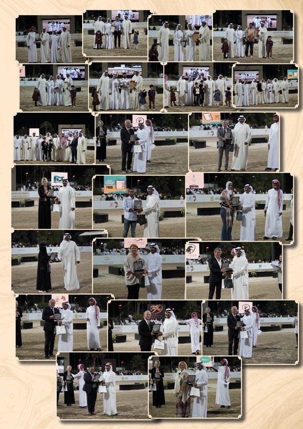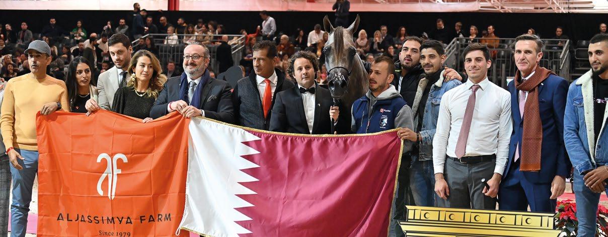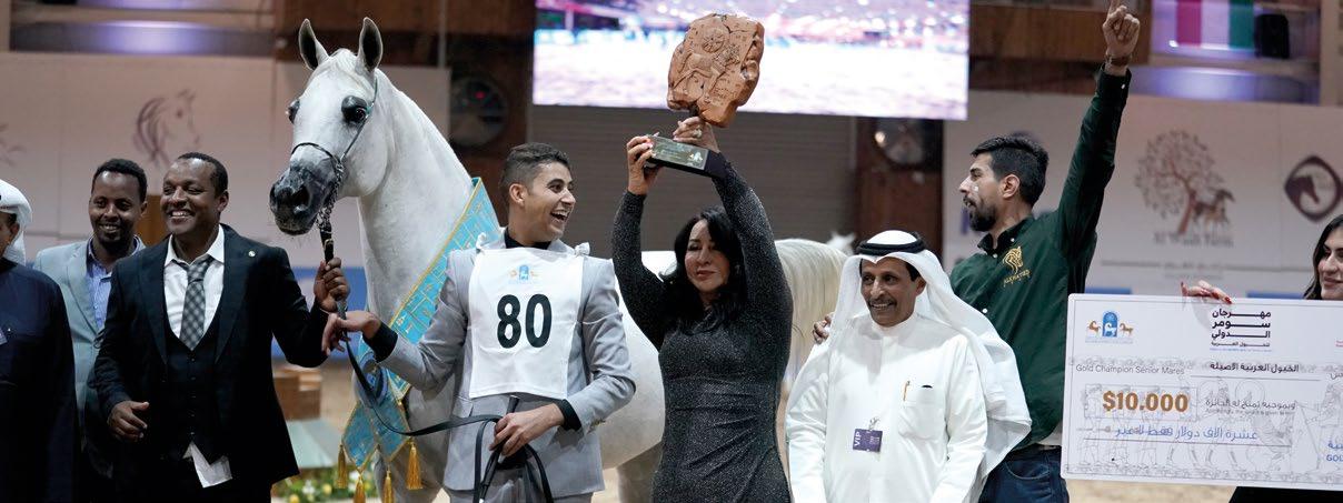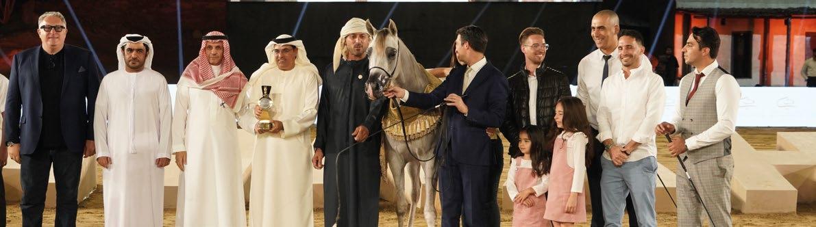 Under the kind patronage of HH Sheikh Meshal Al-Ahmad Al-Jaber Al –Sabah, Crown Prince of Kuwait & HH Sheikh Nawaf Al A-Ahmad Al-Jaber Al-Sabah, Amir of the State of Kuwait ERAB ARABIAN HORSES INTERNATIONAL SHOW 1-2-3 DECEMBER 2022 BAIT AL ARAB - KUWAIT WRITTEN BY SONIA SMALDONE The Arabian horse is part of the Arab world’s history and tradition, and in Kuwait, in particular, it is considered the Arabs’ duty and responsibility to preserve the breed and to divulgate its importance worldwide. For about 40 years, Bait Al Arab State Stud has been massively involved in breeding purebred Arabian horses as precious genetic pool to preserve their heritage in Kuwait. From 1st to 3rd December, three of their representatives – Mr Abdulrahman Alfuraij, Mr Saud Aljarallah, and Mr Yousef Albaijan baptized the 2022 Erab Arabian Horses under the kind patronage of HH Sheikh Meshal Al-Ahmad Al-Jaber Al –Sabah, Crown Prince of Kuwait and HH Sheikh Nawaf Al A-Ahmad Al-Jaber Al-Sabah, Amir of the State of Kuwait. Essentially a beauty contest for horses, the event was divided into 12 categories, for fillies, mares, colts and stallions of various ages and took place at the Arabian Horse Center, with a large attendance by local and outside breeders. From the VIP tables, we watched the careful operations of eight highly-reputed international judges: Mrs Darius Claudia (Germany), Mrs Stojanowska Anna (Poland), Dr Aragno Gianmarco (Italy) Mr Trela Marek (Poland), Mr Detailleur Koenraad (Belgium), Mr Santoro Francesco (Italy), Mr Abbas Abdel Raouf (Egypt) and Mrs. Stigler Irina (Italy). With the rank of Disciplinary Commissioners, Dr Mohsen Mohamed (Egypt), Dr El Sherief Omnia (Egypt) Dr Albogamiy Noorah (Saudi Arabia). In his role as Ringmaster Mr Ceccaroni Roberto (Italy). Speakers of the event were Mrs Lama Ahmad Abdulaal (Kuwait) and Mr Fawaz Al Zomie (Kingdom of Saudi Arabia). For those who could not fly to Fujairah, Ara078 Erab Arabian Horses International Show 2022 001 > Al Shiraa Arabian Horse Show 014 > Dubai Stud 028> Alwajba Stud 036 > Atticus ENB 048 > Paris World Championships A PREVIEW 070 > The Art of Handling with Nicola Mearelli 078 > Erab Arabian Horses International Show 2022 108 > The Art of Judging with Eric Gear 118 > 1st Iraq Sumer National Show 2022 AHM 26