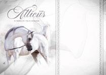 ders, Kalliste Arabians who have entrusted his undoubtedly illustrious future to the auspices of Jadem Arabians in Belgium. A great breeding horse is usually the result of a great pedigree and Atticus ENB is no exception. His sire, El Nabila B requires little introduction. Born at the Babolna stud in Hungary and the result of the mating of two World Champions – the explosively masculine, chestnut Russian superhorse, Kubinec (Balaton by Menes x Kosmetica by Muscat) and the swan white, airy moving Straight Egyptian mare, 218 Elf Layla Walayla B (Assad by Ansata Halim Shah x 223 Ibn Galal 1 - making her twice inbred to the iconic SE matriarch, Hanan): El Nabila B’s pedigree is a breeder’s poem of power and beauty! Still a radiant presence at 27, over his long life Nabila has been crowned national champion both in Brazil and the United States, a title he claimed at the unprecedented age of 14, and built an international reputation as one of the world’s great broodmare sires. Om El Benedine, Atticus’ tall and typey dam comes from an equally important and storied lineage - sired by the legendary El Shaklan son, Sanadik El Shaklan and out of the Sharem El Sheikh daughter, Om El Beneera. Beneera - the last foal of her world-renowned dam Estopa who gave birth to her at 27 - grew up to find the most prolific and important line in the Om El program producing both exceptional daughters and sons like Om El Azeem – all inheriting her big eyes, big movement, and big personality.