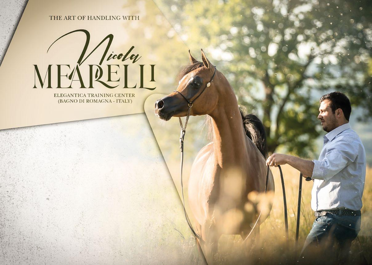 Hello, Nicola. Thank you very much for accepting the invitation! To provide some background to our readers, could you tell us a bit about yourself, your family, and your education, please? Hello, AHM! It is an honour to be given this opportunity. Having grown up in the countryside of central Italy, I was surrounded by nature all my life. have always had horses in my life, from my grandfather’s brother, who was a horse dealer, to me when started participating in endurance competitions. When have you first met an Arabian horse? Who was it? My first Arabian horse experience was when was only a child -- it was horse named Bakr with Polish lines, whose genealogy don’t recall since it was a few years ago. Bakr was an endurance horse that my father rode. Tell us about your early stages in the show industry as a handler. How did it all start? Following my graduation as a surveyor, I went to work at Schouckens Training Center, where I learned a lot of skills. My next stop was David Boggs (Midwest Training Center), where I met Dagmar Gordiano, an incredibly talented Brazilian trainer and handler. learned everything from Dagmar. then moved to Brazil with Rinaldo Lounghini, an excellent trainer and handler (a showman) consider one of the most gifted individuals in the ring. Dagmar Gordiano continued to be my mentor. Then returned to Italy. This led me to build training centre with my cousin Enrico Mearelli. I was staying at David Boggs’ when I had my first experience handling Arabian Interviewed by Sonia Smaldone 070 The Art of Handling with Nicola Mearelli Only a few hours after the conclusion Championships in the ‘Ville Lumière’, social media have been stormed by pictures and messages from the proud winners of this 41st edition, with members of the international Arabian horse breeding community posting congratulations, glorious acknowledgements, sharing videos day. Approximately 100 horses from Europe and the Middle East were entered in this year’s pageantry at the Parisian Bourget Exhibition Centre, which lasted three consecutive days from 17 to 19 November Nine judges of international provenance were appointed to score the registered horses, divided into six classes according to age and sex. From the Vip tables, and with exquisite music playing all along, we followed the operations made by Mr Aeschbacher Urs (Switzerland), Willie Brown (South Africa), Mrs Eberhardt Sylvie (Germany), Mr Al Hussini Sufian T. (Palestine), Mr Lieblang Steve (United States of America), Mr Rocco Luiz (Brazil), Mr Scanzi Fausto (Italy), Mrs Van Hee Martine (Belgium) and Mr Marc Veray (France). With the rank of Disciplinary Commissioners: Dr Benamar Malak (Morocco), Mr Amira Abdel Wahab Ben Ali, Dr Kupaj Jean-Bernard (France) and Mrs Valette Christine (France). In their capacity as Ringmasters: Mr Ladek Alain (France) and Mr Valette Bertrand (France). Official Scorer: Mr Denis Charles (France). Marks Checking Officer: Mr Jean-Marc Dubois (France). Show Commentator: Mr Guy de Fontaines (France). Music played by: Ms Asya Bruillon (France). Official Show Photographers: Mr Wieslaw Pawlowski (Poland) and Ms Lisa Abraham (USA). 048