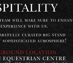 ◆ 2 qualifying classes (award to the top 7 horses in the class) ◆ 1 VIP table 2nd row for 6 guests ◆ 3 days of catering by 5’ Marriott Hotel during the show ◆ Electronic Banner during the show ◆ 2 pages advertisement in our magazine in Arabic and English ◆ E-mail blast thanking for the support ◆ Link to your website / app on our site ◆ Opportunity to distribute promotional material in VIP ◆ Free valet parking at the event SILVER PARTNERSHIP | 80 000 AED AHM 6