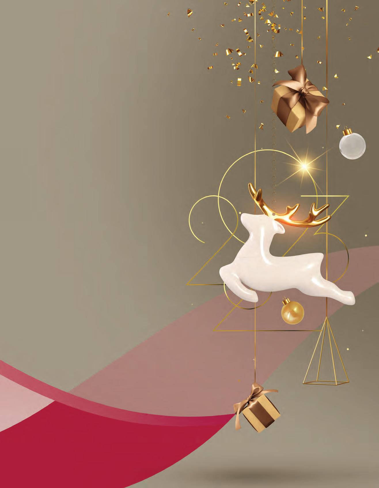 At this most awaited season of the year, escape to island time and festive vibes. Create long-lasting memories with your loved ones at the Festive Afternoon Tea, Christmas Market, and events. Ring in 2023 with a cabaret-themed island party at the Beach Deck or sumptuous New Year’s Eve dinners at Wolfgang Puck and Bahrain Bay Kitchen. CELEBRATE WITH US +(973) 1711 5000 | fourseasons.com/bahrain