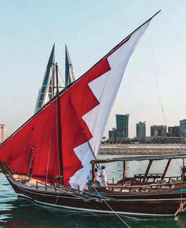 he name “Bahrain” is derived from the Arabic word, “Bahr”, which means “sea”. Formed out of 33 islands, the name reflects the archipelago’s position between two seas. Its strategic location has brought influence from traders travelling between ancient Mesopotamia and Indian civilisations. Bahrain’s rich history dates back to the discovery of over 100,000 burial mounds at Saar, A’ali, and other northern parts of Bahrain and is believed to be the largest prehistoric cemetery in
