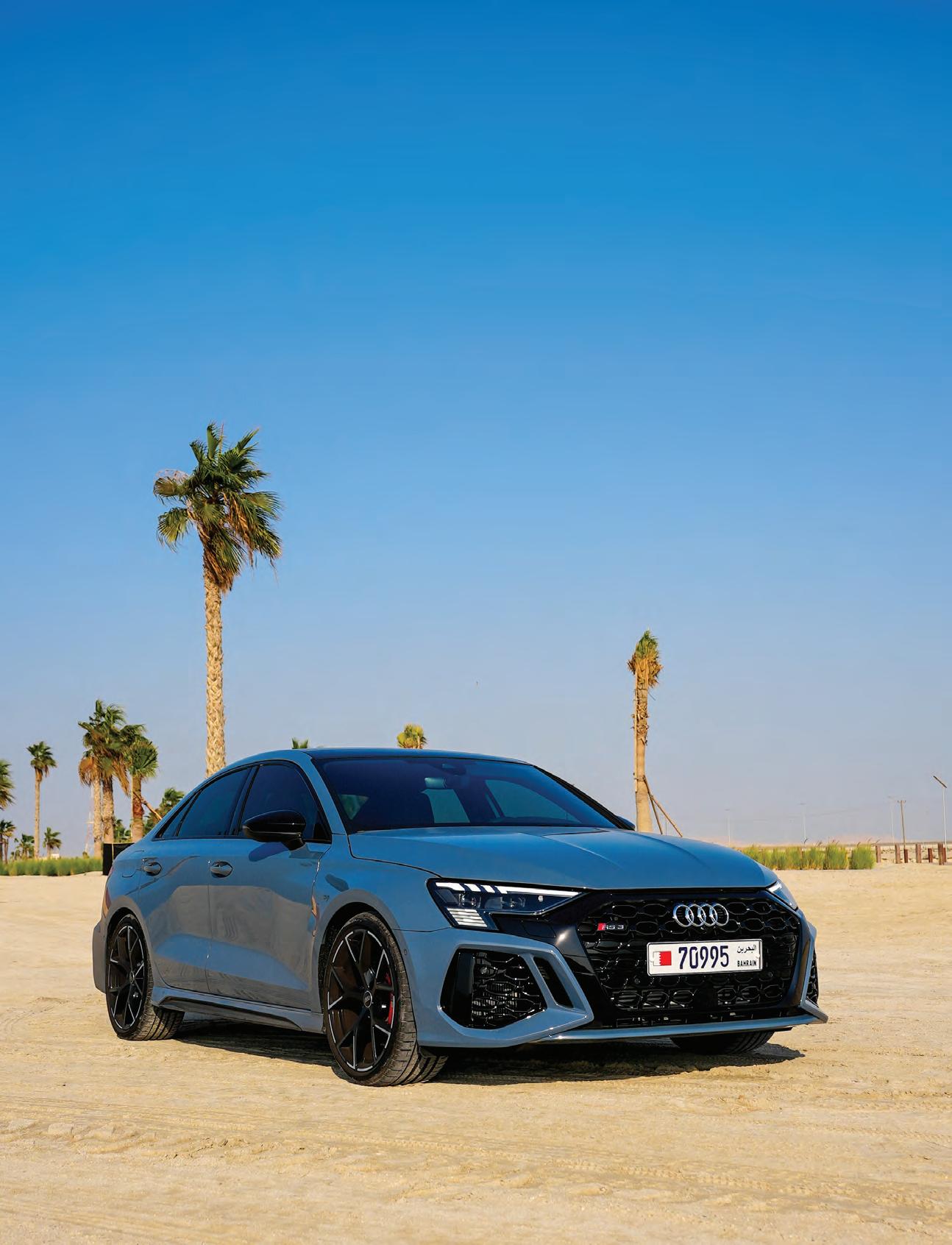 There’s upgraded brakes, stiffer suspension, and special wheels on performance tires. Despite its performance capabilities, it’s an easy and comfortable car to drive around town. I had the RS3 for four days, including over a weekend, so was able to ‘live’ with it for a bit. Not only did I test its capabilities on the empty back roads around Zallaq, but drove it around Manama, Seef and Amwaj to the mall, gym, restaurants, friends’ houses etc., and very much enjoyed my time with it.