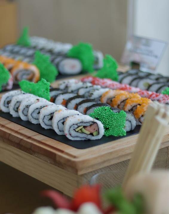 Moving onto the main course options, the Roasted Beef Brisket was a true delight with well-done slices of meat coated with a thick rosemary roasted potato sauce. We also tried the Herb Crusted Hamour, the cheesy Macaroni and Bechamel, and the Traditional Lamb Kabsa (known as a one-pot rice preparation). The key attraction though was the selection of Sushi with crab, tuna, vegetables, and egg!