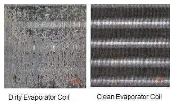 The evaporator coil is kept cleaned and cooling is effective with regular service. Lack of servicing will cause the evaporator coil to clog fast and additional cost to clean the clog on the coil will be incurred to restore back the cooling (e.g. through chemical wash, steam cleaning).