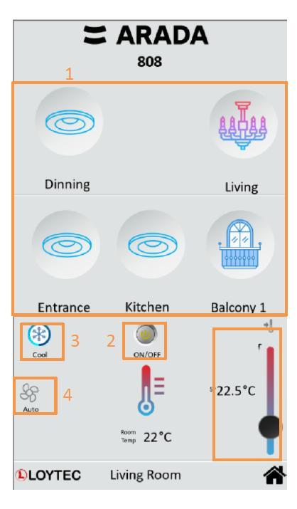 This guide explains the purpose of each button/icon on the smart home control panel and how to use them.