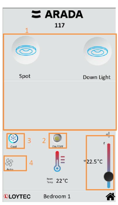 • Usethe navigation buttons tomovebetweenscreens(e.g.,Livingroom,Bedroom).
