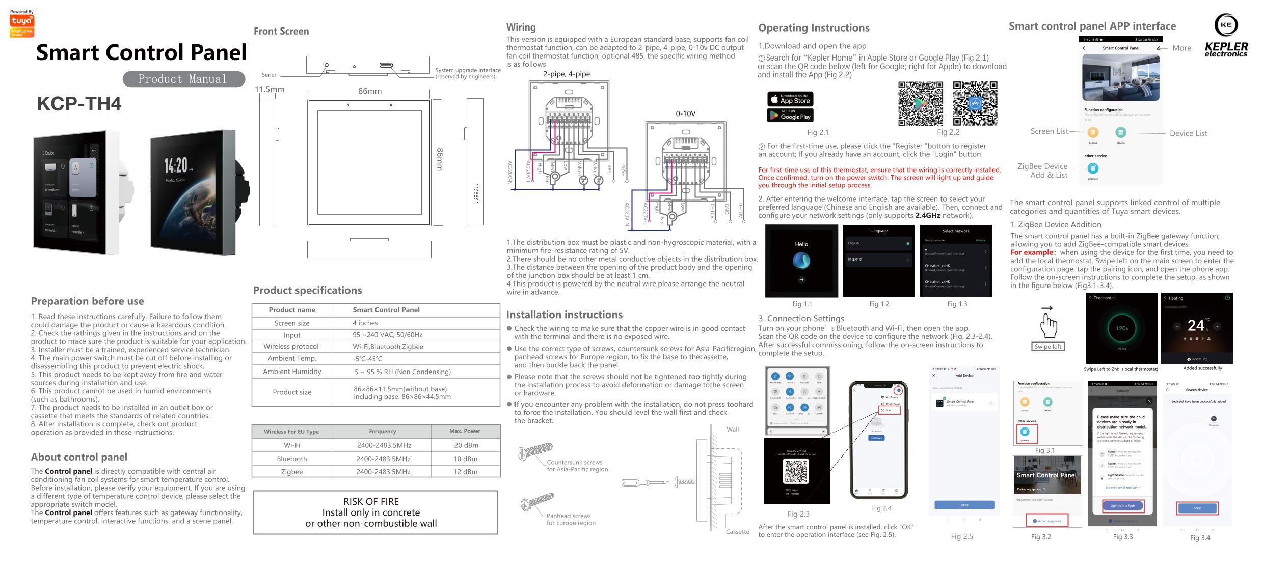 The KCP-TH4 Smart Thermostat is a wall-mounted intelligent thermostat designed to control and monitor HVAC systems in residential and commercial environments. It provides precise temperature regulation, user-friendly operation, and seamless integration with building management and smart home systems.