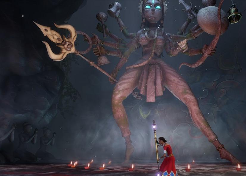 Raji: An Ancient Epic seamlessly blends platforming, puzzlesolving, and combat. Players use divine weapons like Durga’s Trishul and Vishnu’s Sharanga bow, complemented by an intuitive combat system. The environments, inspired by Indian architecture, resemble traditional Indian paintings, with meticulously crafted levels that reflect the beauty of Indian culture, from lush forests to