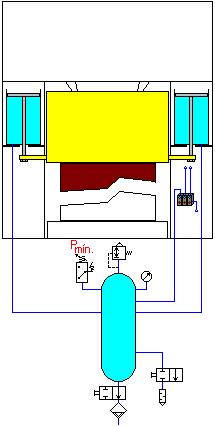 A pressão do ar do compensador de peso do martelo balanceia o peso deste último, além do peso da parte superior da ferramenta e da placa intermediária, se houver.