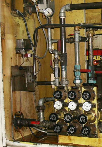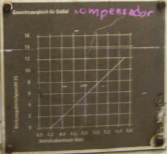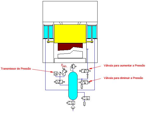 A regulagem é feita lentamente, pois o compensador tem um reservatório de grande volume e o preparador precisa ter sensibilidade para atuação da válvula. Basicamente, a regulagem depende da válvula reguladora de pressão com manômetro, e é monitorada a pressão mínima de trabalho da prensa por um pressostato.